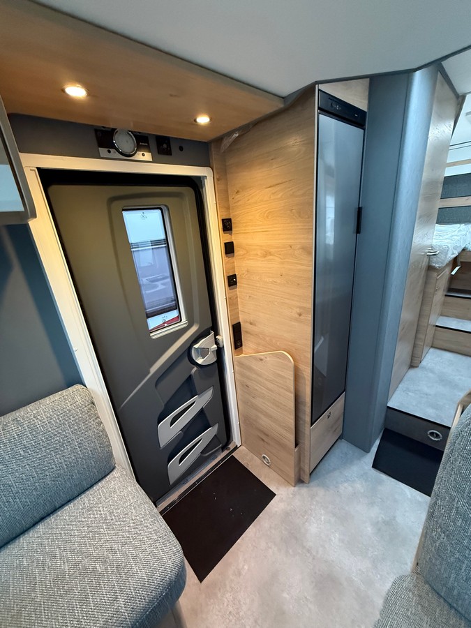 Elektroinštalácia: nadstavbová batéria AGM, 95 Ah, baldachýn nad nadstavbovými dverami, kontrolný panel, EBL s integrovanou ochranou prepätia a samostatným ističom, LED podsvietenie v celom vozidle, počet zásuviek 1x 12V, 8x 230V, 4x USB, predstanové svetlo 12 V, oddeľovač na štartovaciu a nadstavbovú batériu a chladničku