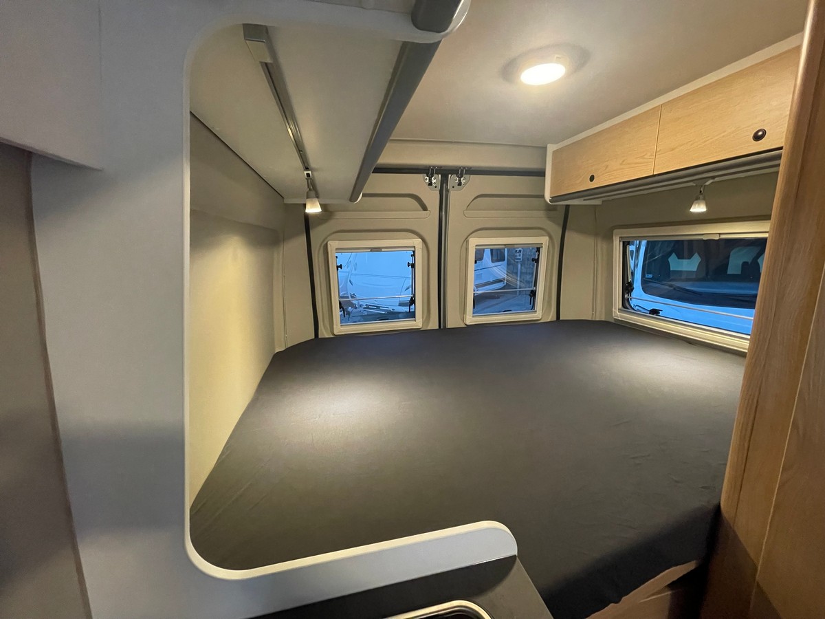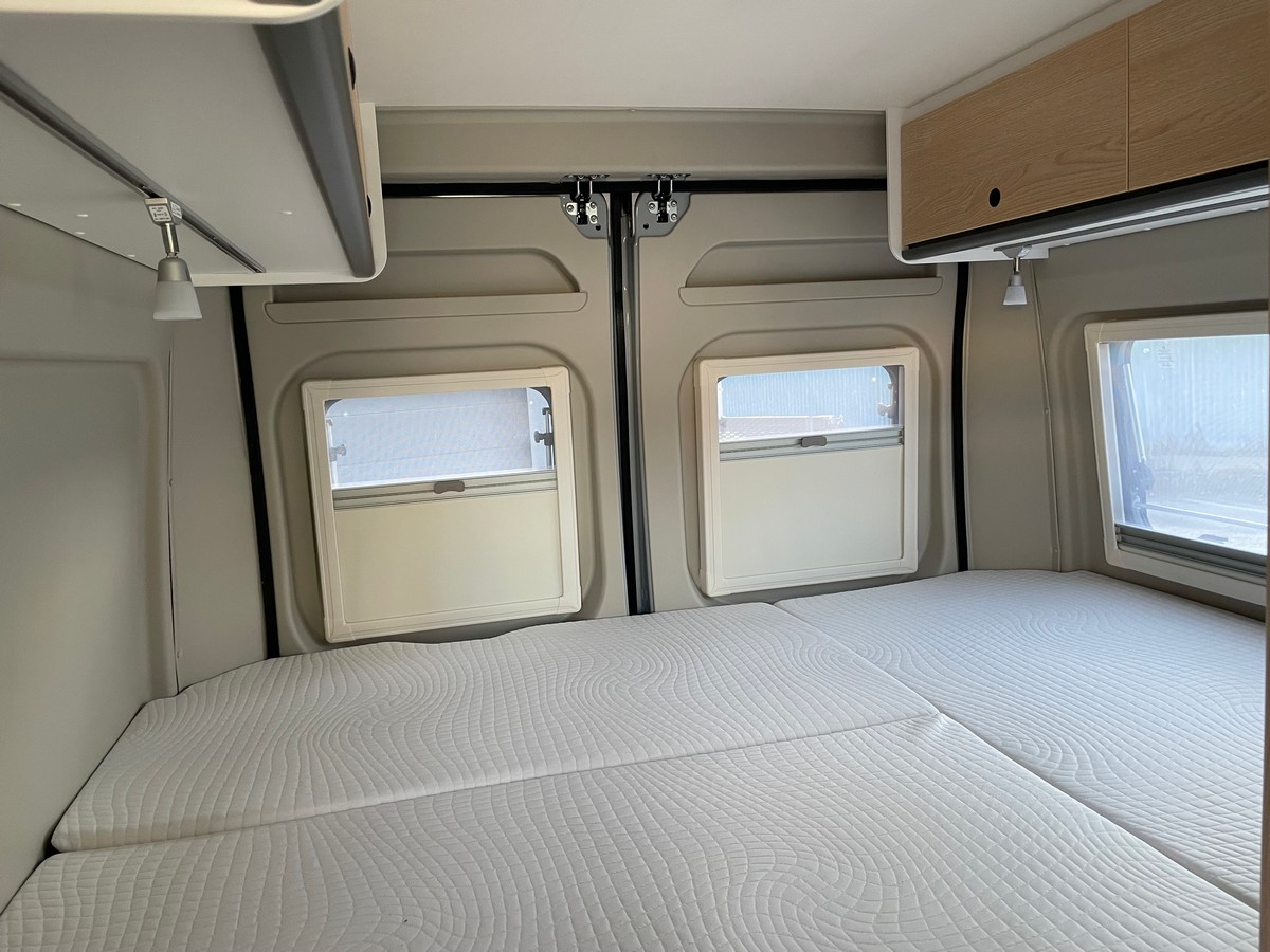 Nadstavba interiér/obytný priestor: Isofix pre dve sedadlá, predel medzi obytnou časťou a garážou s nástupným schodíkom k zadnej posteli, jedálenský stôl s integrovanou odkladacou priehradkou, polovičný jedálenský kút s integrovanou odkladacou priehradkou, zadná posteľ s lamelovým roštom, vysokokvalitné matrace pre väčší komfort ležania, polohovateľné bodové svetlo v koľajničke, ergonomicky tvarované polstrovanie pre väčší komfort pri sedení, priestranné odkladacie priestory, odkladací priestor v zadných a posuvných dverách, priestranný šatník, dvere so sieťkou proti hmyzu, strešná skrinka s ambientným osvetlením, dekór dreva Black Flow, Dyna White a Active Grey, podlaha Mountain Lodge, látkové zatemnenie kabíny