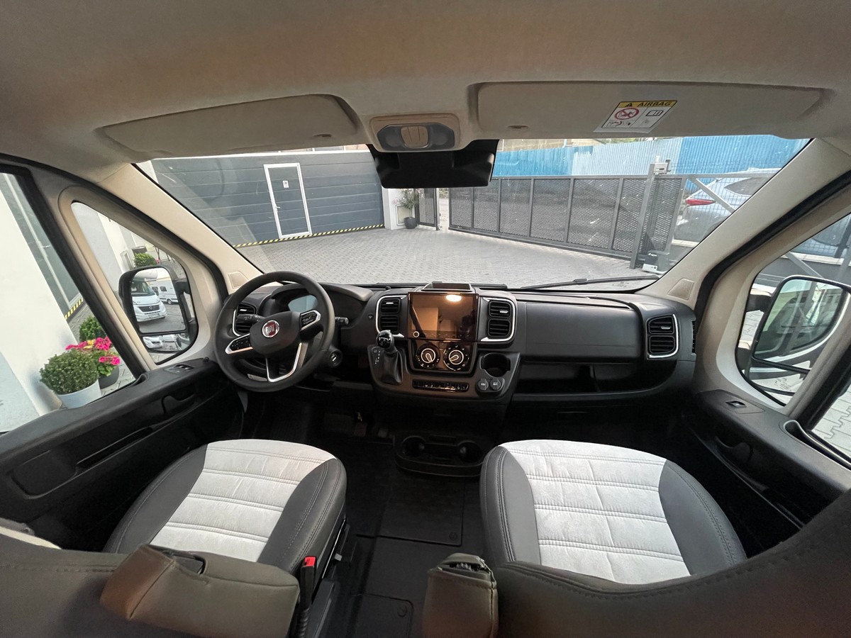 Rozšírená sériová výbava Adventure Edition: Fiat Ducato 3.500kg - 2.2 Multijet - 103kW / 140PS Euro 6-6 stupňová manuálna prevodovka, lakovaný nárazník, strecha na spanie, čalúnenie Adventure, Adventure polep, 16" hlinikové disky original Fiat pre Light podvozok, markíza, Basic balíček (sprchové vybavenie (výsuvná sprchová hlavica, sprchový záves, vodiaca lišta, držiak sprchy), okno v kúpeľni, široký vstupný schodík, otočné predĺženie stola v sedacej časti, tyč na šaty v sprchovacom kúte, príprava kábla pre cúvaciu kameru), Style balíček (Volant a riadiaca páka v koženom vyhotovení, vetracie otvory so striebornými aplikáciami (Techno-Trim), mriežka chladiča čierna lesklá, ochranný panel motora čierny, LED pásiky denného svietenia, svetlomety s čiernym rámom)Vozidlo: Eco Pack Start-Stop funkcia + booster, klimatizácia motorová manuálna, tempomat, súprava na opravu pneumatík Fix & Go Kit, nádrž na naftu 75 l, nastavovanie výšky a sklonu pre sedadlo vodiča a spolujazdca, držiak nápojov v stredovej konzole, príprava na rádio s reproduktorom a strešnou anténou (DAB), airbag vodiča a spolujazdca, centrálne uzamykanie kabíny s diaľkovým ovládaním, denné svietenie, sedadlo vodiča a spolujazdca v látke obytného priestoru, otočné sedadlo vodiča a spolujazdca, ESP, ESC vrátane ASR & Hillholder, ESC Setup, elektrické okná v kabíne, sedadlo vodiča s 2 lakťovými opierkami, vonkajšie spätné zrkadlá elektricky ovládateľné a vyhrievané, palubný počítač s ukazovateľom vonkajšej teploty, ABS, kotúčové brzdy, stabilizátor zadnej a prednej nápravy, obehové vykurovanie, otáčkomer, posilňovač riadenia, výškovo nastaviteľné svetlomety, imobilizér, 3-bodový bezpečnostný pás, USB zásuvka