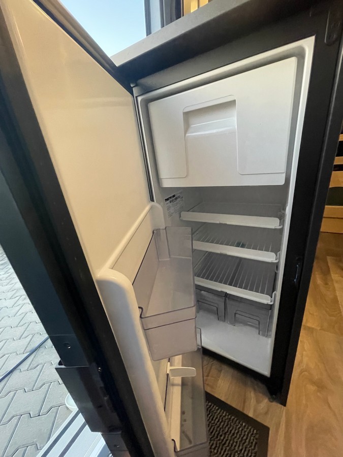 Kuchyňa: ergonomicky usporiadaná kuchyňa s veľkorysou pracovnou plochou, priestranné šuplíky v kuchynke s dojazdom, 2-horákový sporák s elektrickým zapaľovaním a skleneným poklopom, úložný priestor za varičom, nádrž na pitnú vodu 100 l, nádrž na odpadovú vodu 90 l, kompresorová chladnička 84 l, LED podsvietenie, závesná lišta