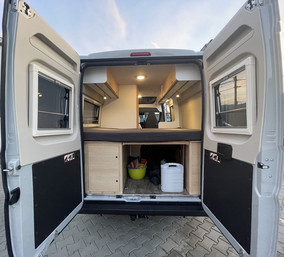 Nadstavba exteriér: 7 rokov záruka na vodotesnosť, výklopné okná s dvojitým sklom, moskytiérou a zatemnením (pri sedacej súprave a v kuchyni), výklopné okno v smere jazdy vzadu vľavo (vrátane zatemňovacej a protihmyzovej roletky), oboje zadné dvere so sklopným oknom (vrátane roletky), strešné okno nad spacím priestorom 40 x 40 cm so zatemňovacou a protihmyzovou roletkou, strešné okno nad sedením Midi-Heki 700 x 500 cm, zadný úložný priestor so štyrmi integrovanými úchytnými okami