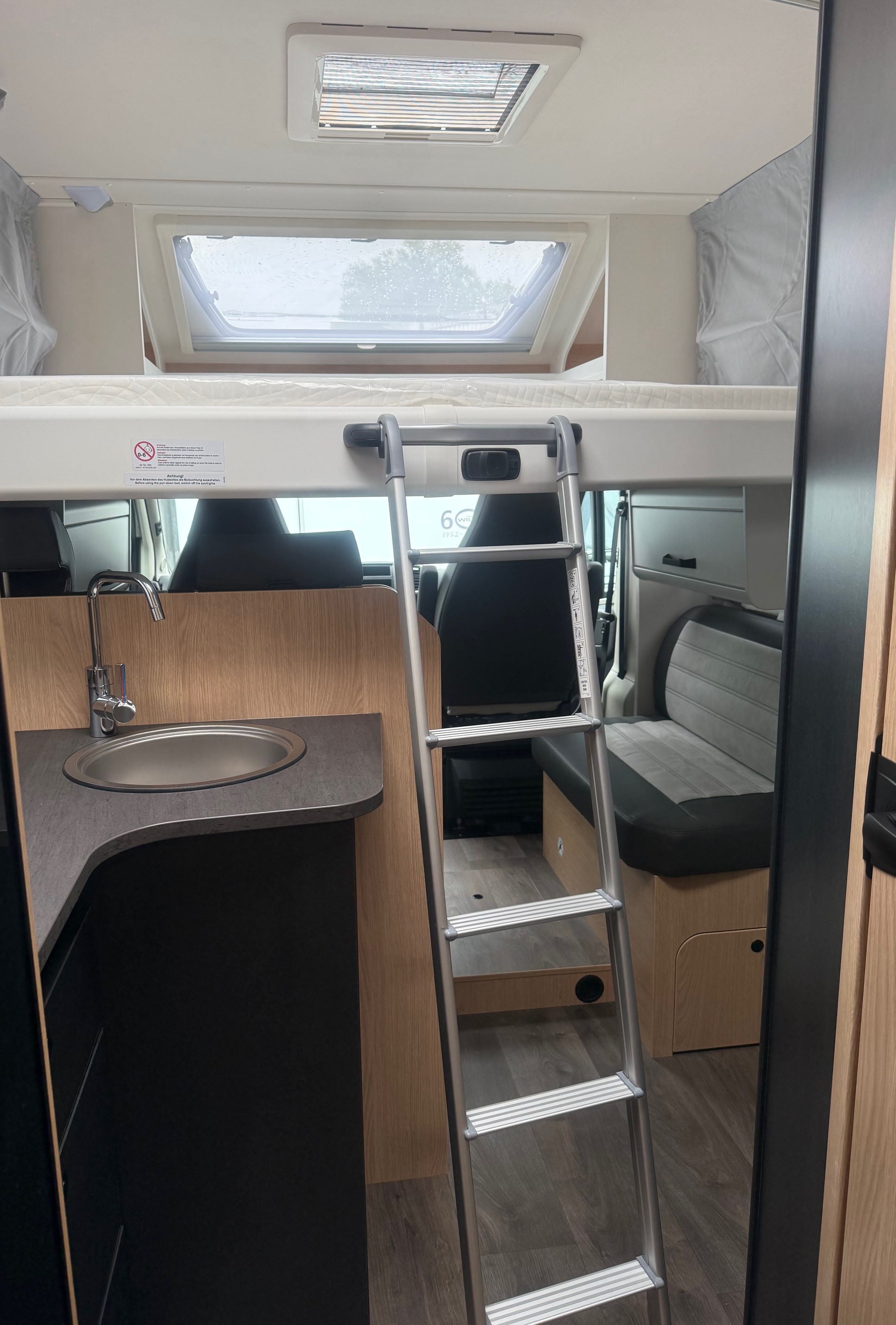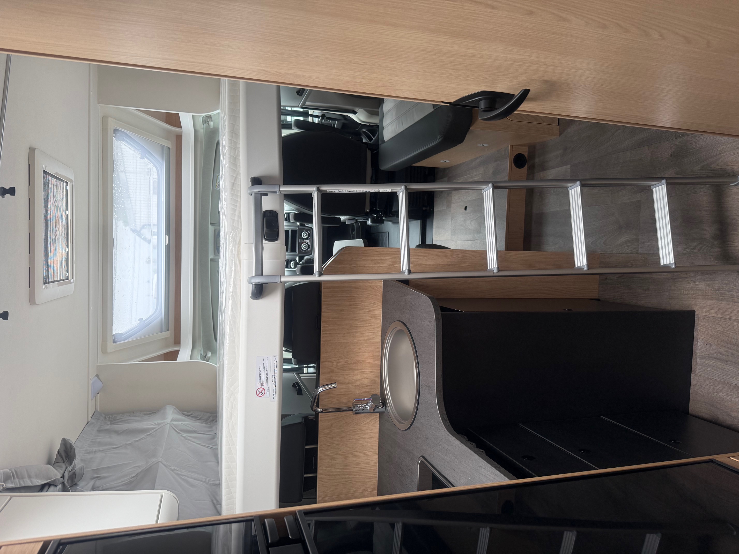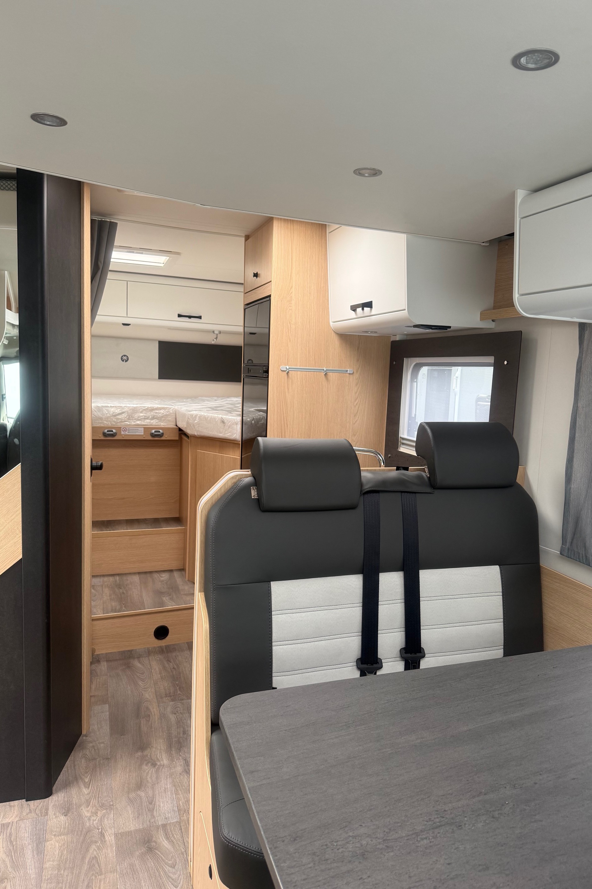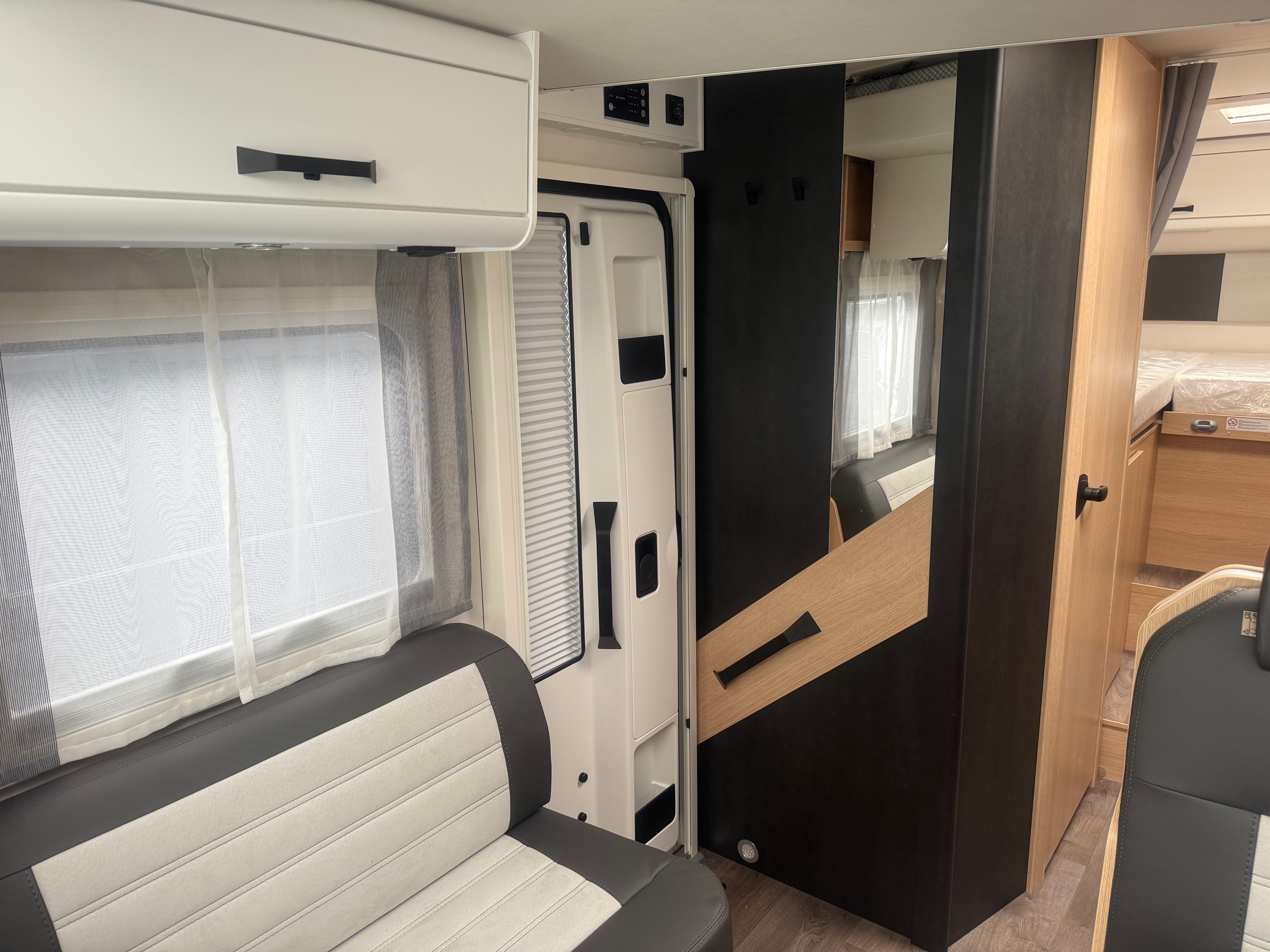 Fiat Ducato 2,2 l Multijet 103 kW / 140 PS, Euro 6 E, 6-stupňová manuálna prevodovka, farba podvozku biela, polep Adventure, poťahy Adventure, dizajnové aplikácie vzadu, okno v kabíne, okno v kabíne, 2. garážové dvierka, veľká chladnička 156 l s mraziakom 29 l, prestavba jednolôžok na dvojlôžko, balíček One Black (markíza, nosič na 3 bicykle), basic balíček (svetelný most, komfortné vstupné dvere s oknom, dvere so sieťkou proti hmyzu-jednodielne, panoramatické strešné okno 70 x 50 cm, priehľadné strešné okno 40 x 40 cm), balíček lakovaný nárazník (lakovaný nárazník, ochrana motora čierna, hmlovky), balíček hliníkové disky Bicolor (kožený volant a hlavica radiacej páky, výstupy vzduchu so striebornými aplikáciami (Techno-Trim), 16“ hliníkové kolesá Bi-Color)