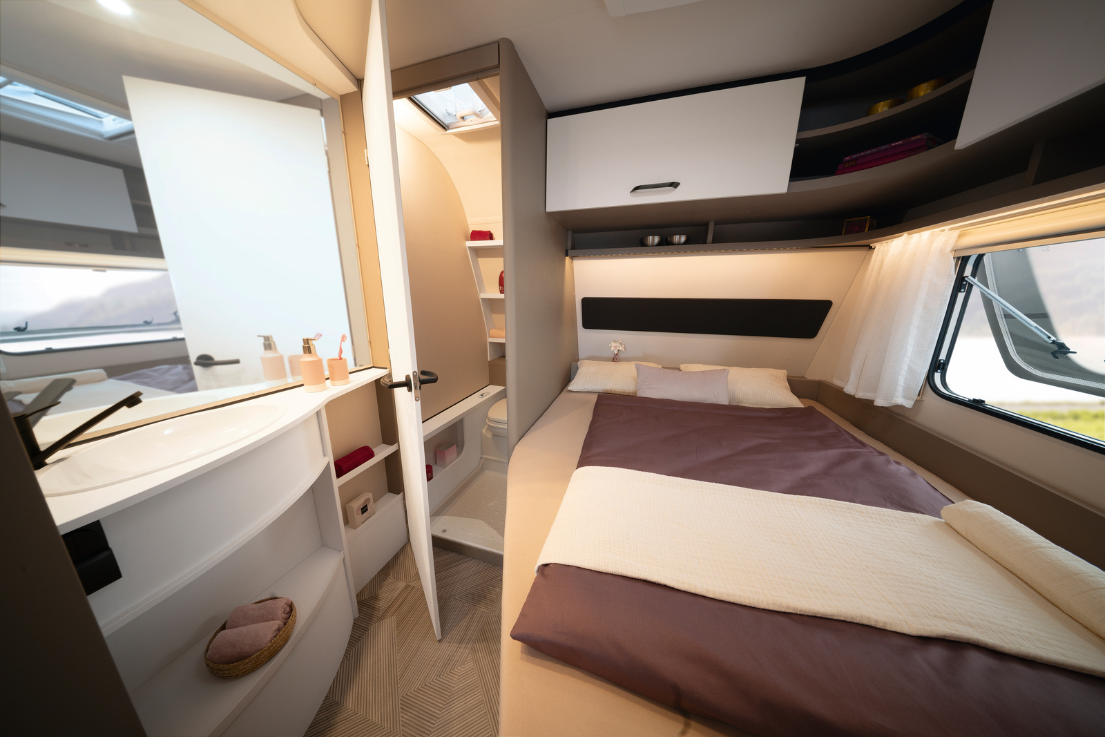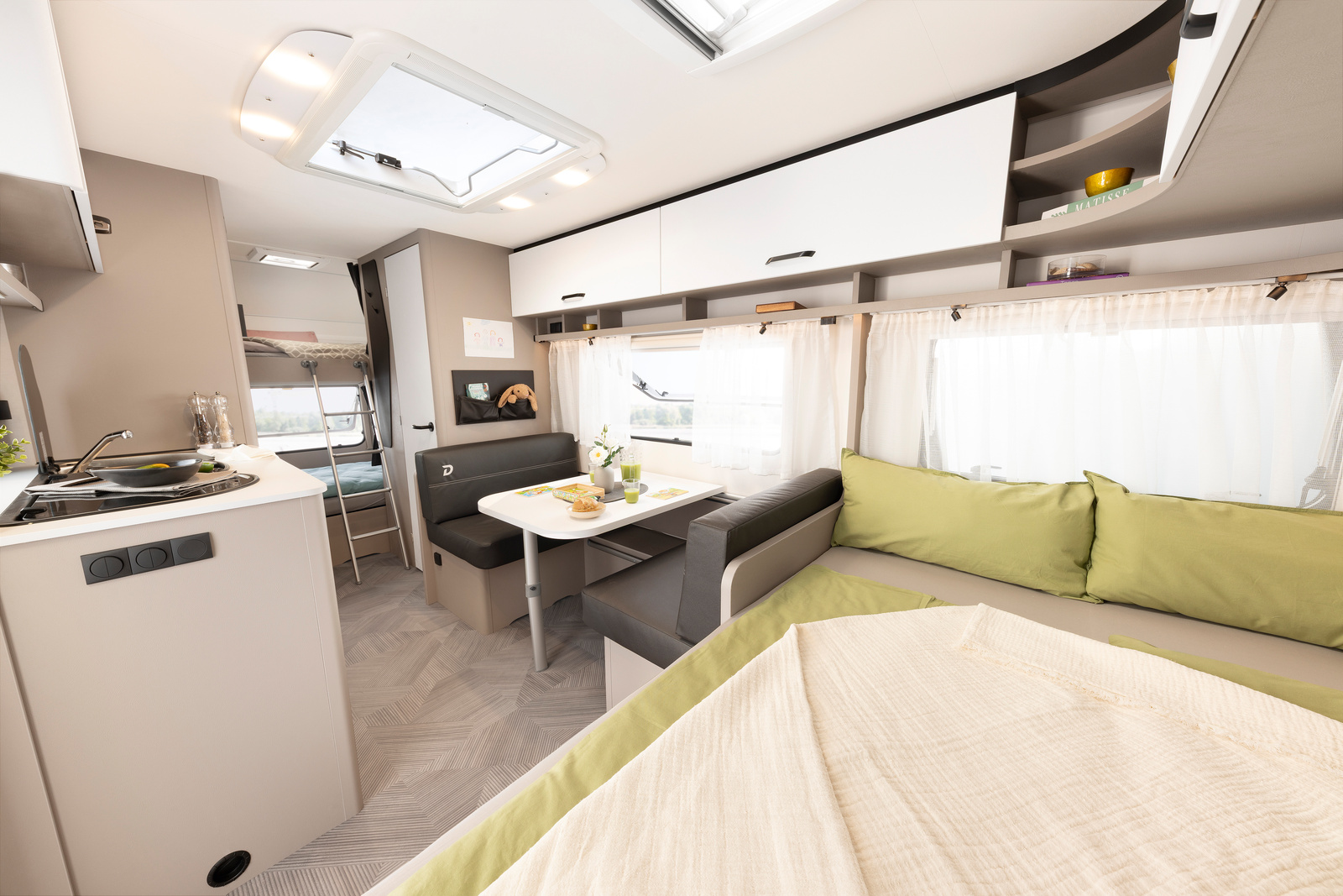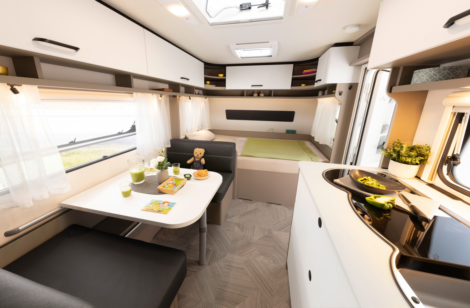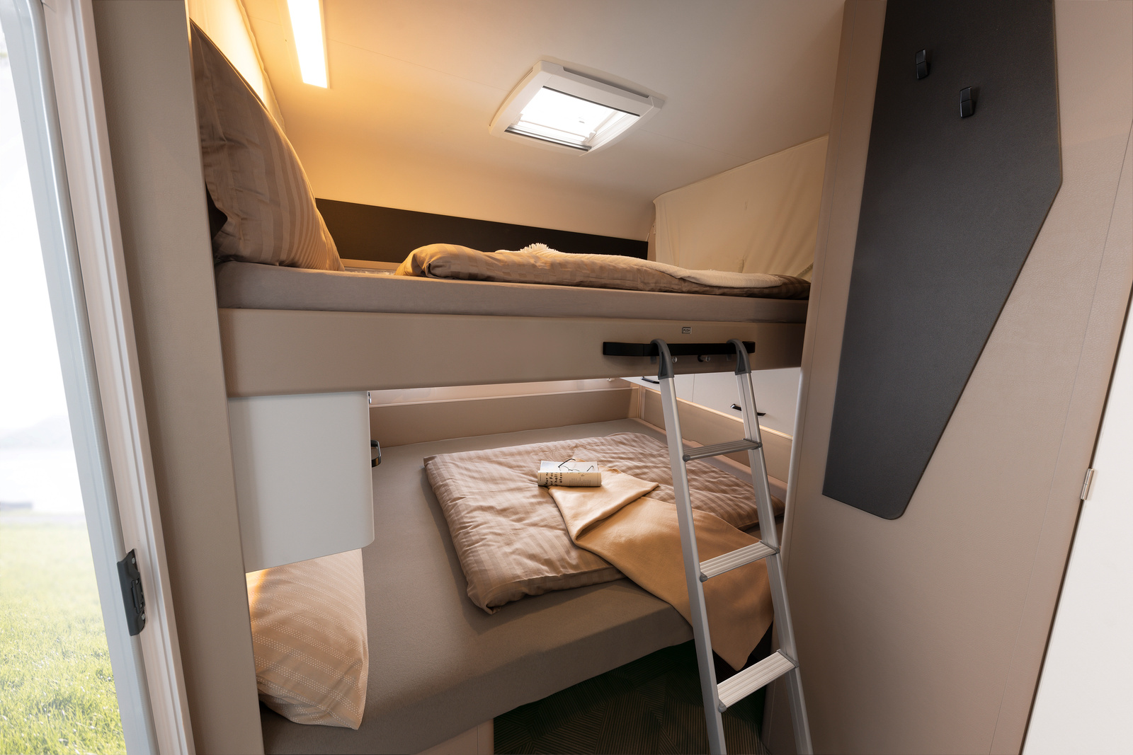 Špeciálne pre rodiny je tu c'go up s výklopnou posteľou: priestranný rodinný karavan, ktorý je prekvapivo kompaktný vďaka dômyselnej výklopnej posteli.