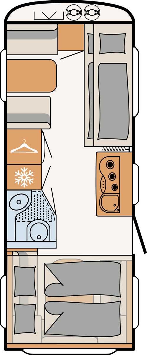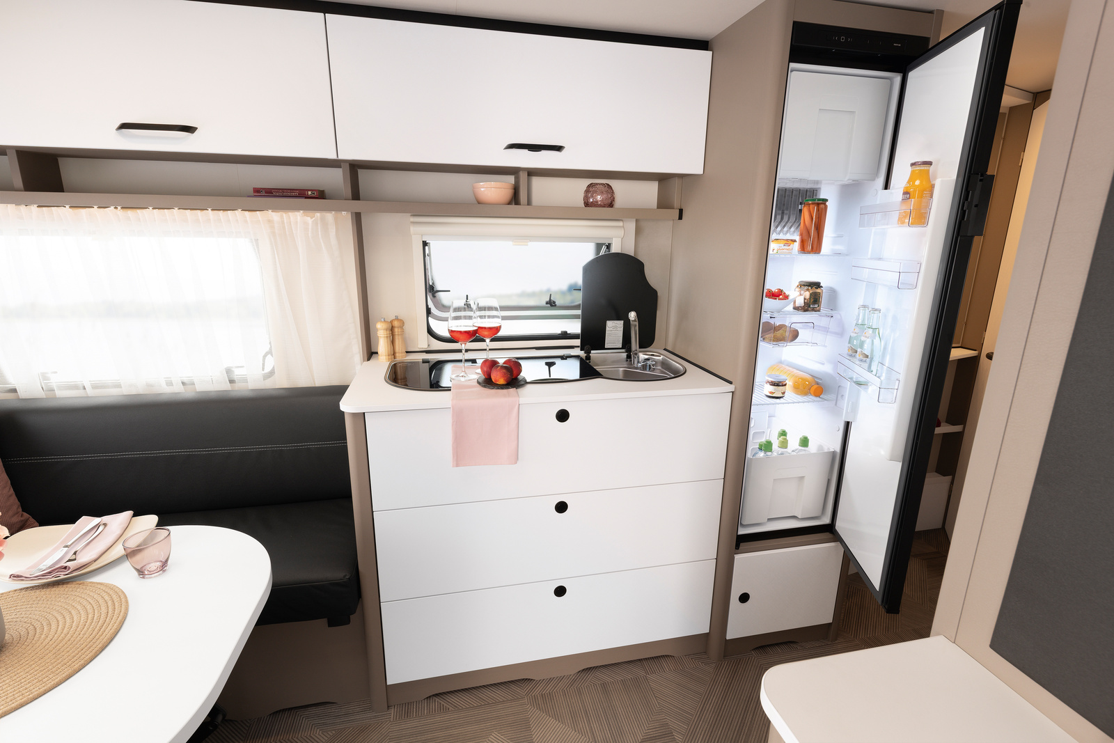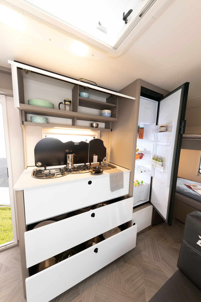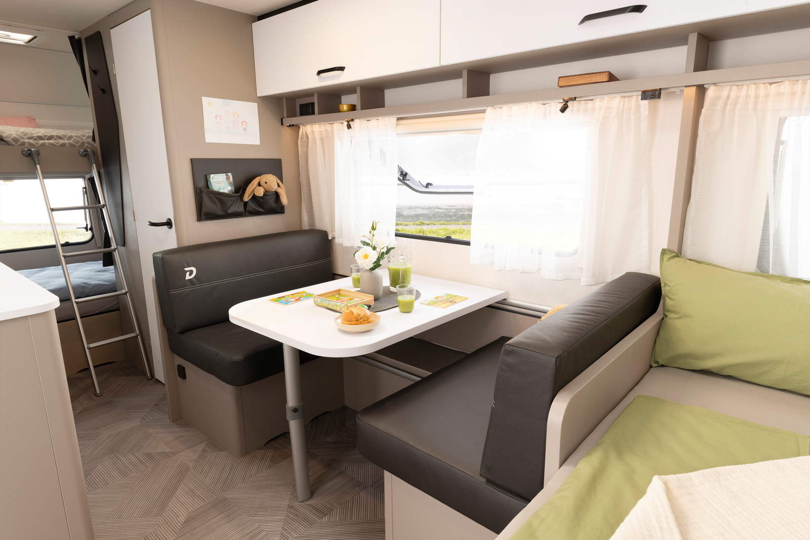 Špeciálne pre rodiny je tu c'go up s výklopnou posteľou: priestranný rodinný karavan, ktorý je prekvapivo kompaktný vďaka dômyselnej výklopnej posteli.