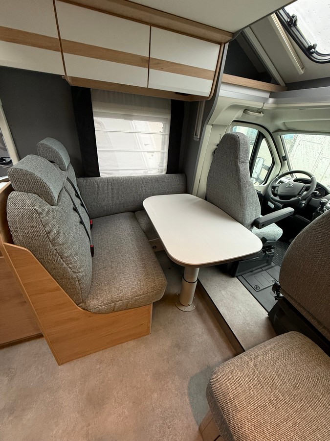 Family balíček: výklopné okno v kabíne, nadstavbové dvere s oknom vrátane zatemňovacej roletky a centrálneho odomykania (vrátane dverí vodiča), zatemňovacie rolety v kabíne, panoramatické strešné okno 70x50 cm v obytnom priestore, nepriame osvetlenie priestoru nad vrchnými skrinkami, nepriame osvetlenie stien, prestavba jednolôžok na dvojlôžko, sedacia súprava v tvare písmena L s voľne stojacou nohou stola a dvoma integrovanými 3-bodovými bezpečnostnými pásmi, garážové dvere vľavo