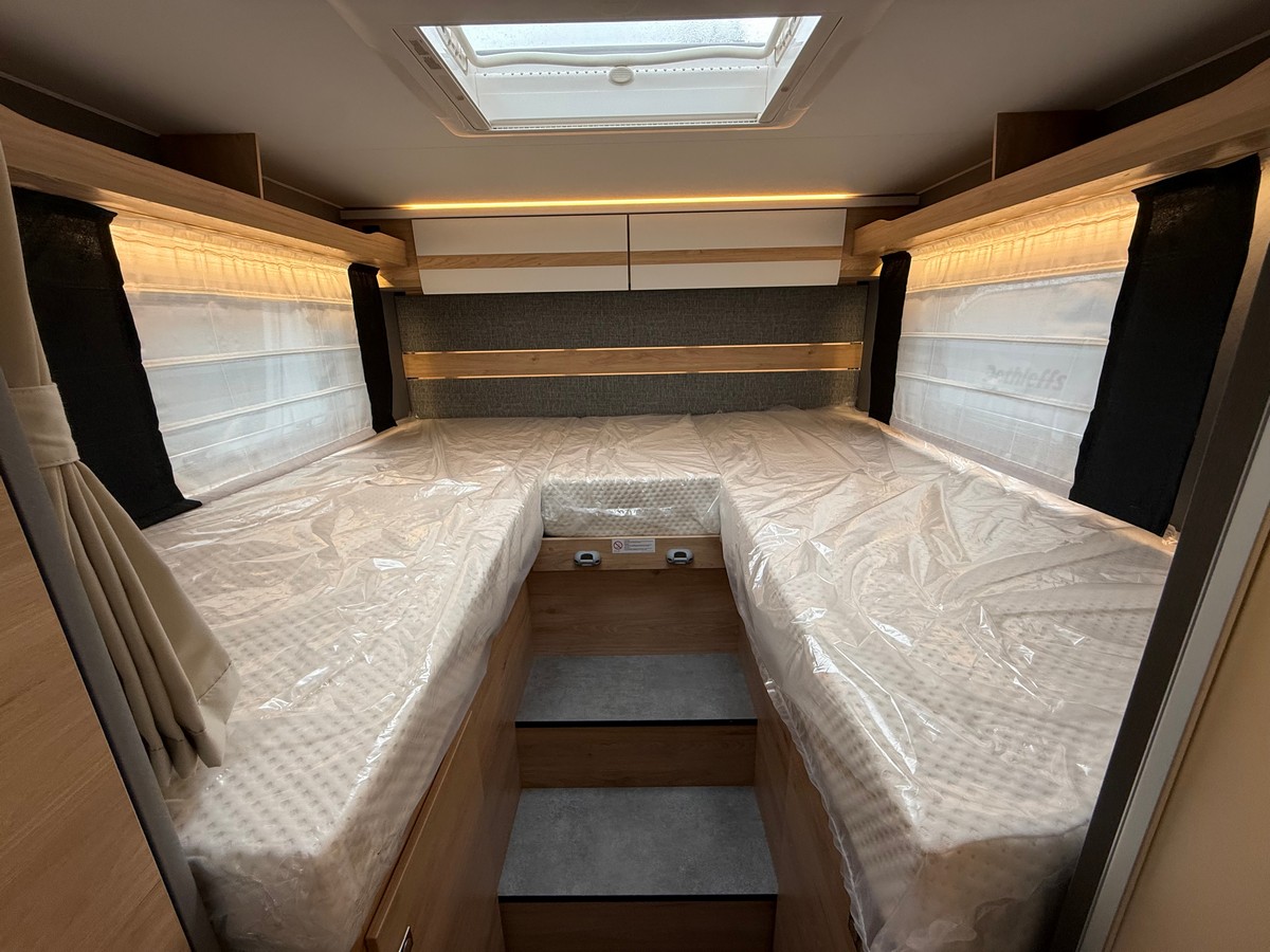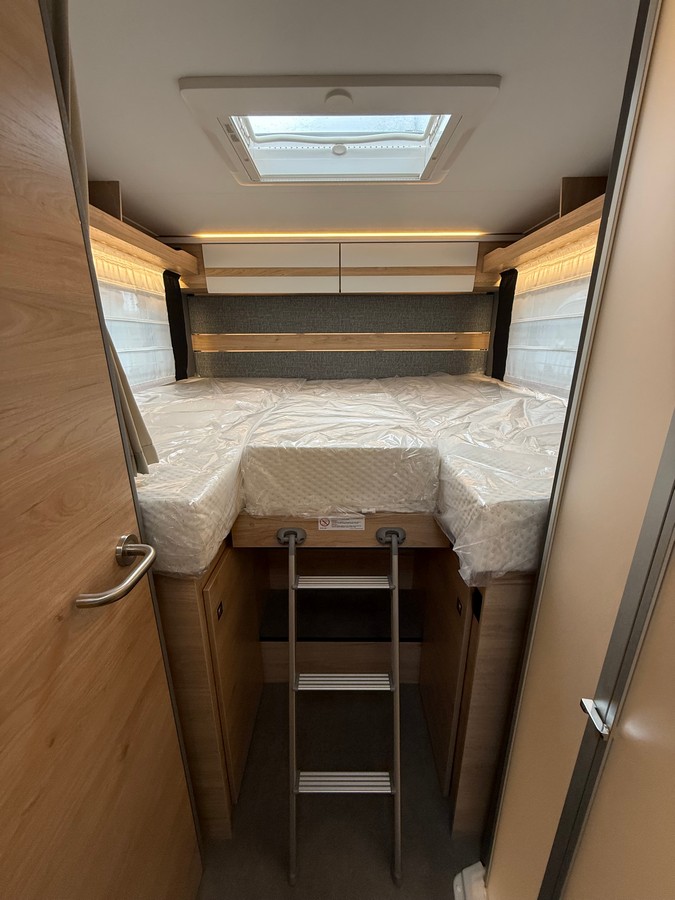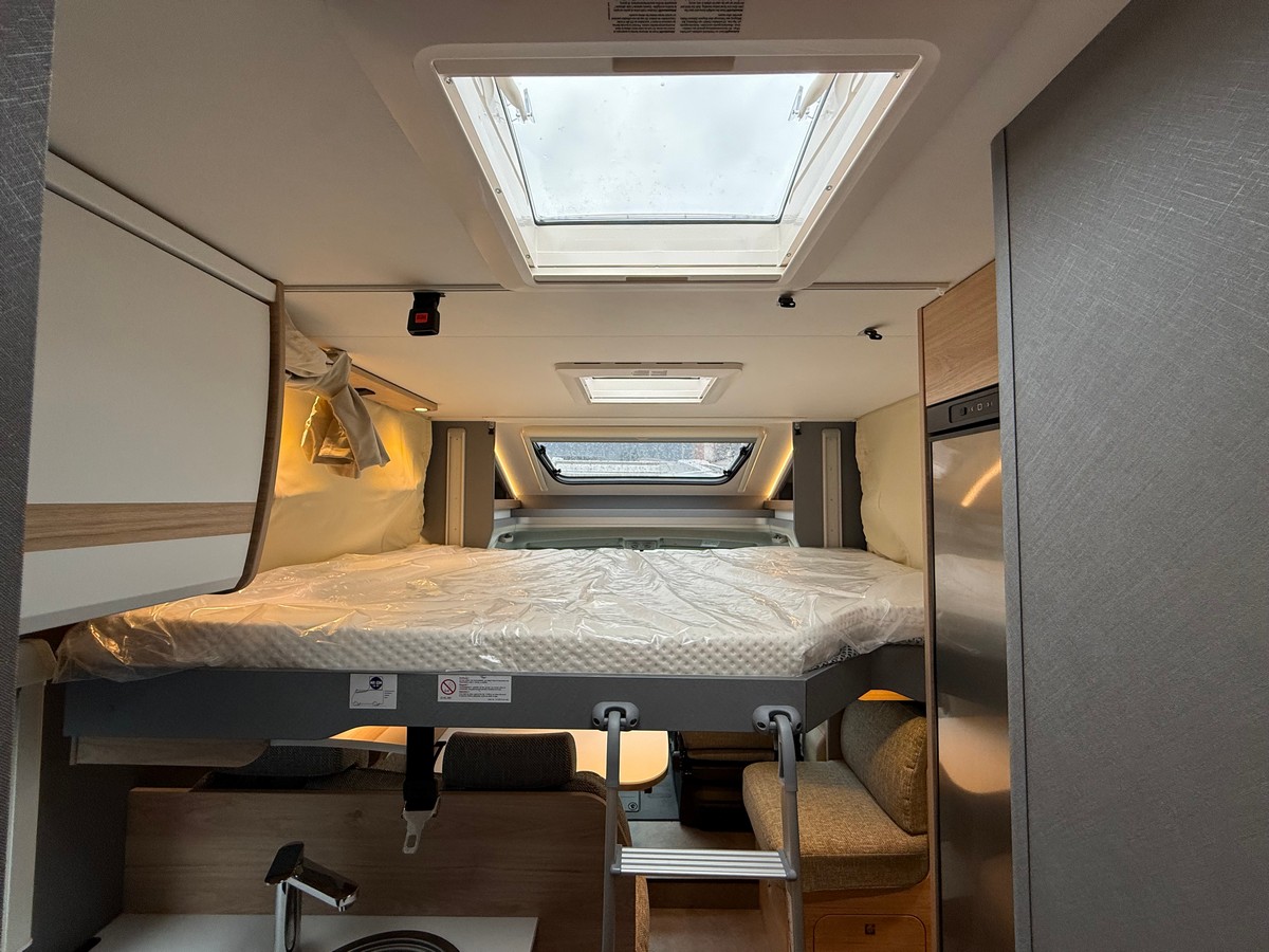 Elektroinštalácia: nadstavbová batéria AGM, 95 Ah, baldachýn nad nadstavbovými dverami, kontrolný panel, EBL s integrovanou ochranou prepätia a samostatným ističom, LED podsvietenie v celom vozidle, počet zásuviek 1x 12V, 8x 230V, 4x USB, predstanové svetlo 12 V, oddeľovač na štartovaciu a nadstavbovú batériu a chladničku