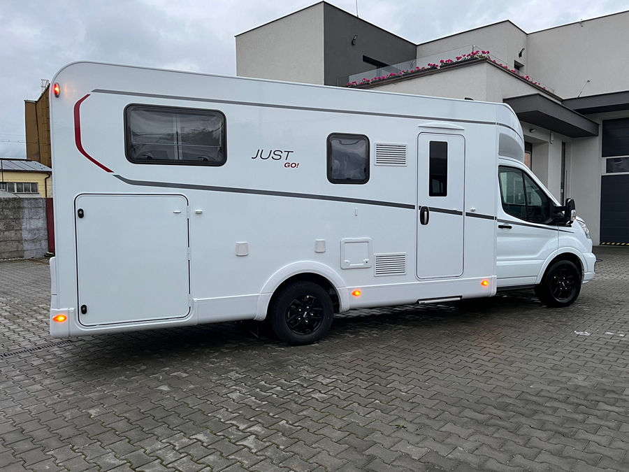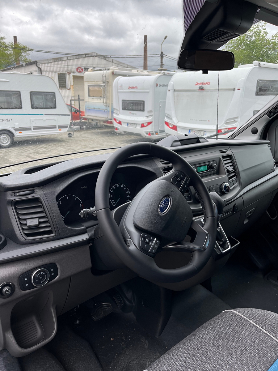 Podvozok Ford: Ford Transit Light nízky podvozok (3.499 kg) , TDCi EcoBlue (2,0 l/155 PS) Heavy Duty, 6-stupňová automatická prevodovkaVybavenie podvozku Ford: 70 l palivová nádrž, ABS, EBD, ESP, TCS, asistent rozjazdu do kopca, asistent bočného vetra, bezpečnostný brzdový asistent, ochrana proti prevráteniu kabíny vodiča, podpora núdzového brzdenia vrátane svetla núdzového brzdenia, vonkajšia farba Frost biela, spätné zrkadlá manuálne nastaviteľné, sedačka vodiča a spolujazdca Captain Chair, dve lakťové opierky otočné, Fix&Go Kit (set na opravu kolies), Ford audiosystém rádio vrátane DAB/DAB+, diaľkové ovládanie na volante, Handsfree, 4 reproduktory a anténa, predný náhon, kožený volant, blatníky pri zadných kolesách, tempomat, rozšírená zadná náprava