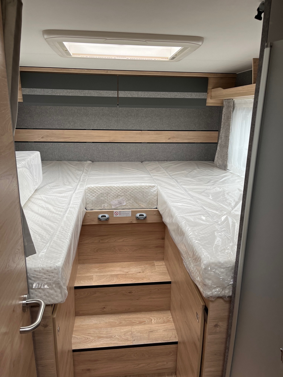 Varianty nábytku: tiché zatváranie dvierok horných skriniek (Softclose), vyvýšené jednolôžka s komfortným nástupným schodíkom, šatníková skriňa vpravo a vľavo po bokoch manželskej postele, sedenie so závesným a rozšíriteľným stolom a 2 integrovanými 3-bodovými bezpečnostnými pásmi, elektrická spúšťacia posteľ nad sedením, isofix prichytenie detských sedačiek pre 3. a 4. sedenie v smere jazdy