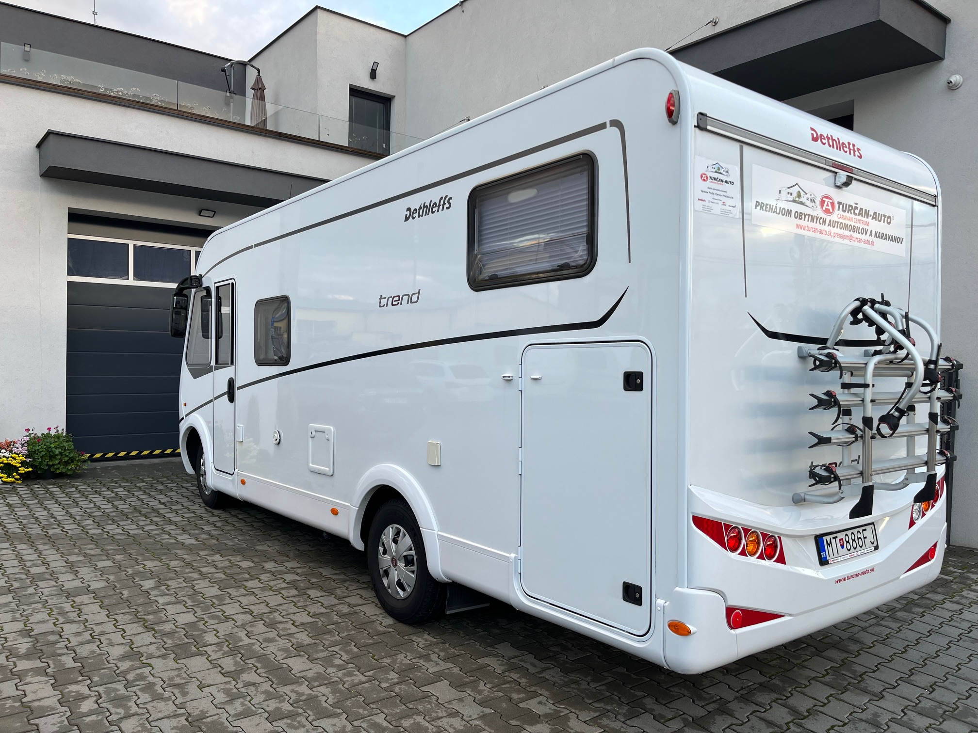 klimatizácia Dometic, multimediálne rádio s cúvacou kamerou, prípojka na gril, solárny panel, rámové okná, markíza Fiamma F45, nosič pre 4 bicykle, LED TV, držiak TV, DVB-T2, vonkajšia plynová zásuvka