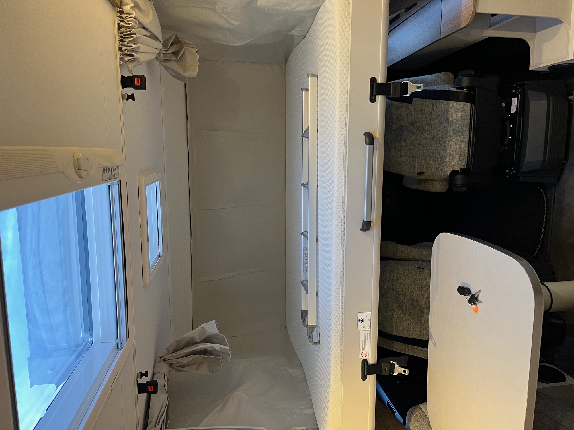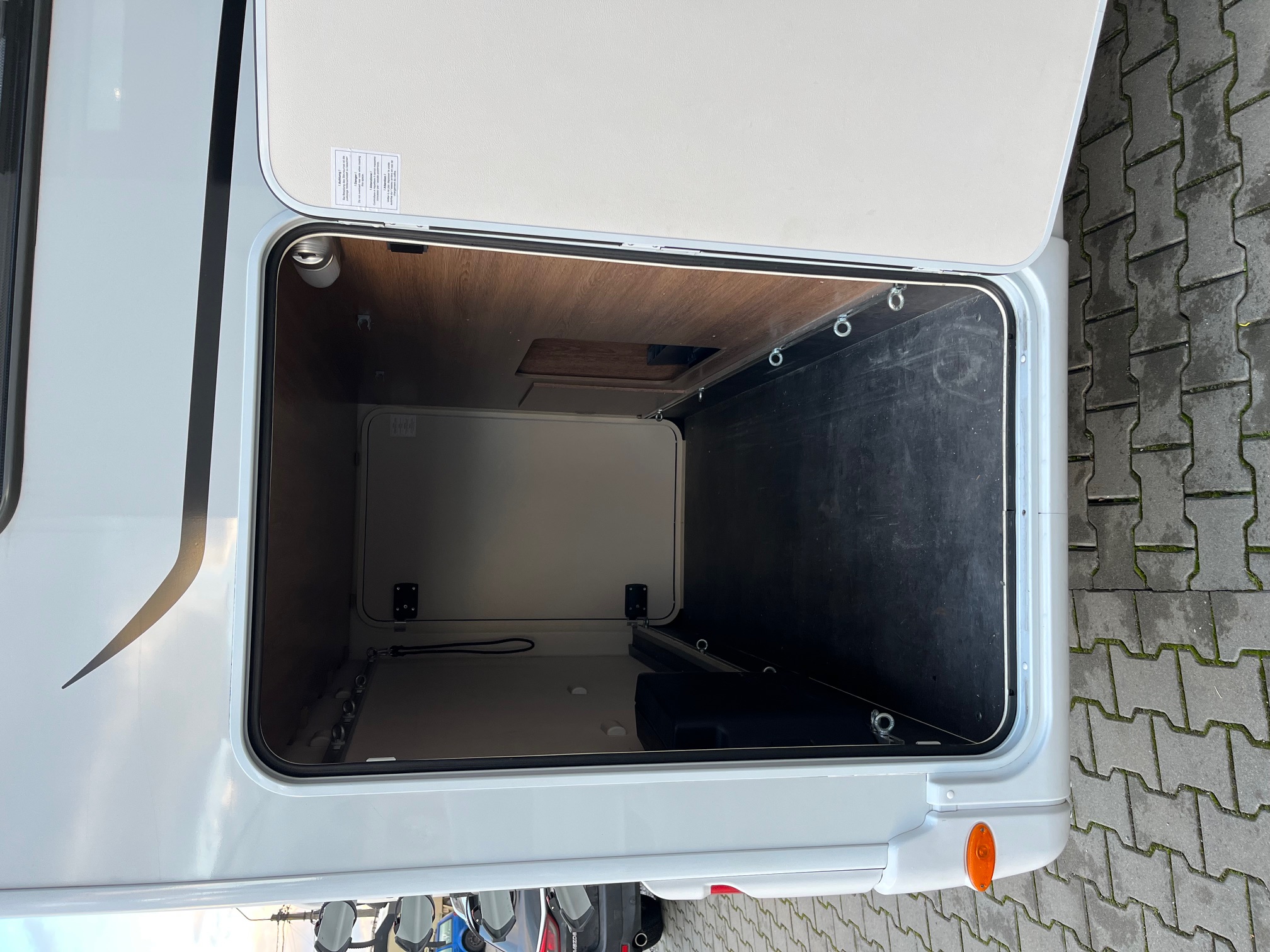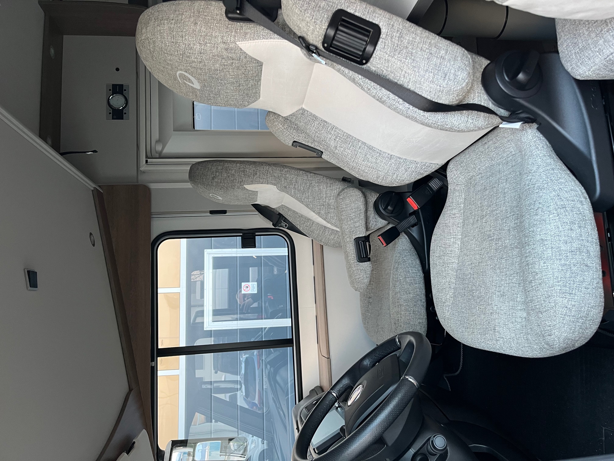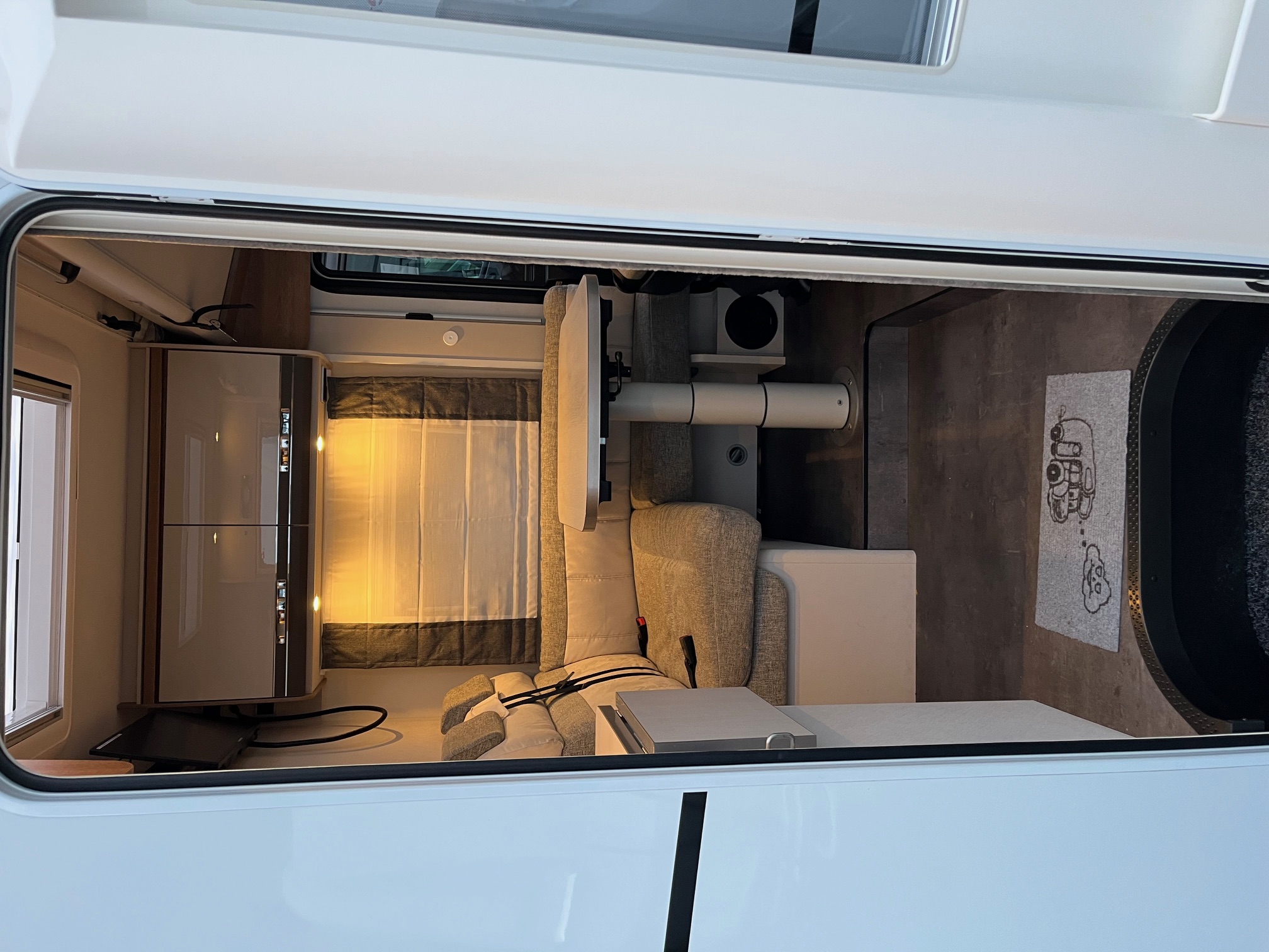 spúšťacia posteľ, strešné okno nad sedením 40x40, nadstavbové dvere 70cm, garáž s 2 servisnými otvormi, upínacími lištami a závuvkou 230V, zatemnenie kabíny, sedadlo vodiča a spolujazdca otočné s opierkami hlavy, lakťovými opierkami