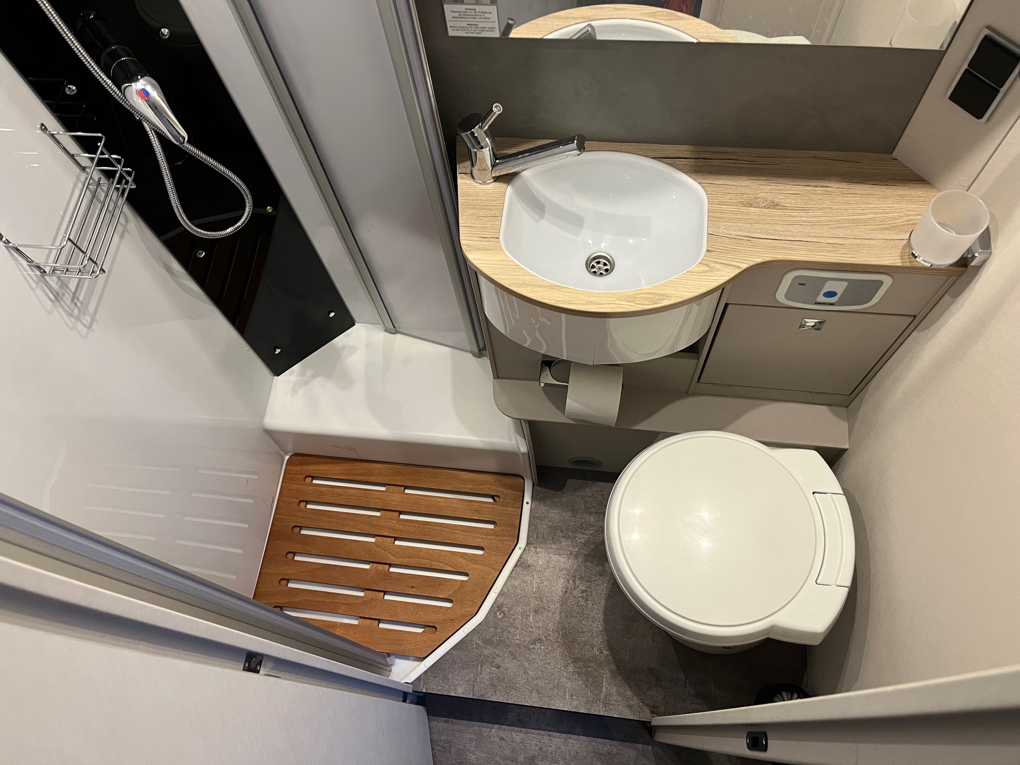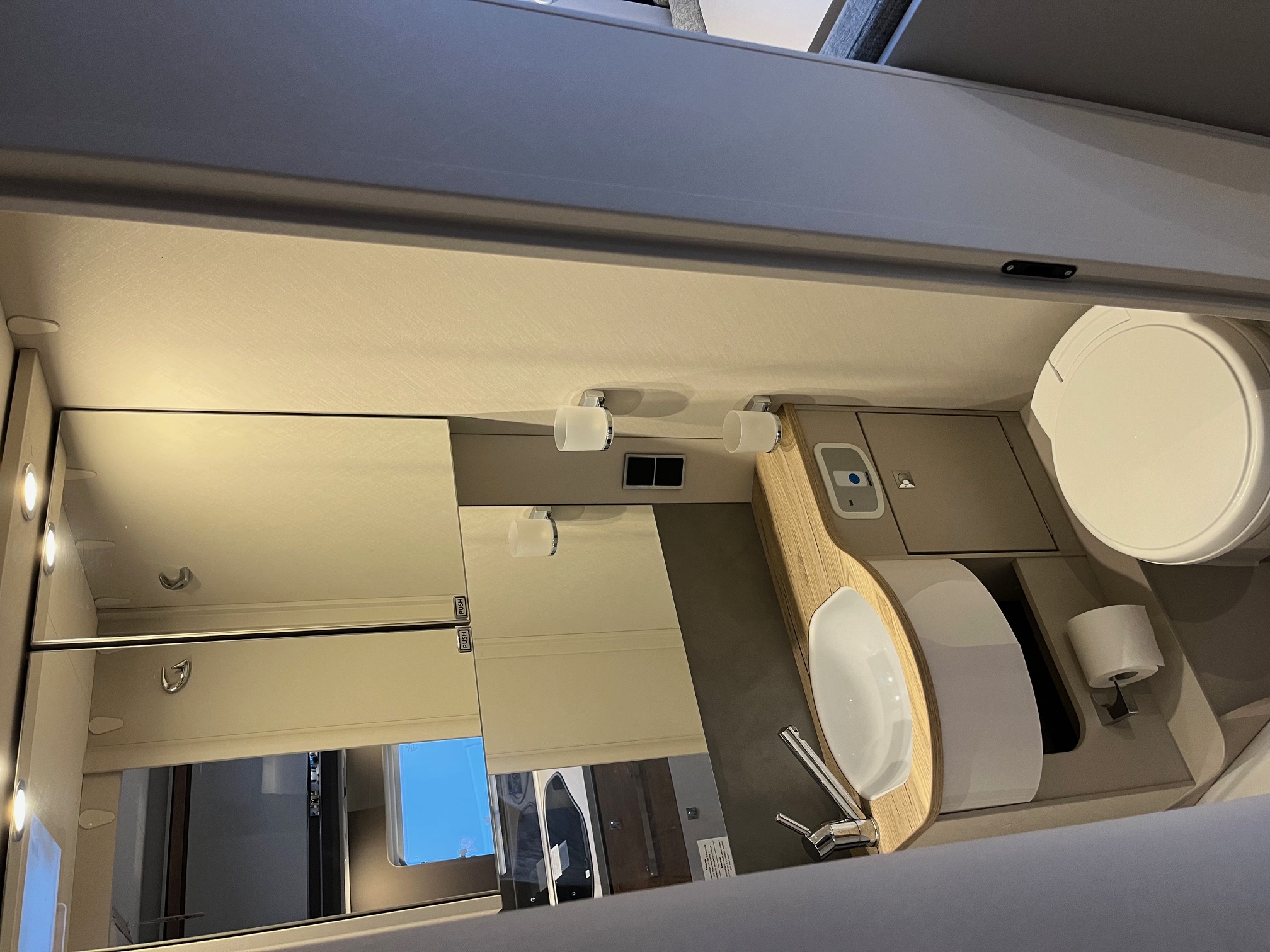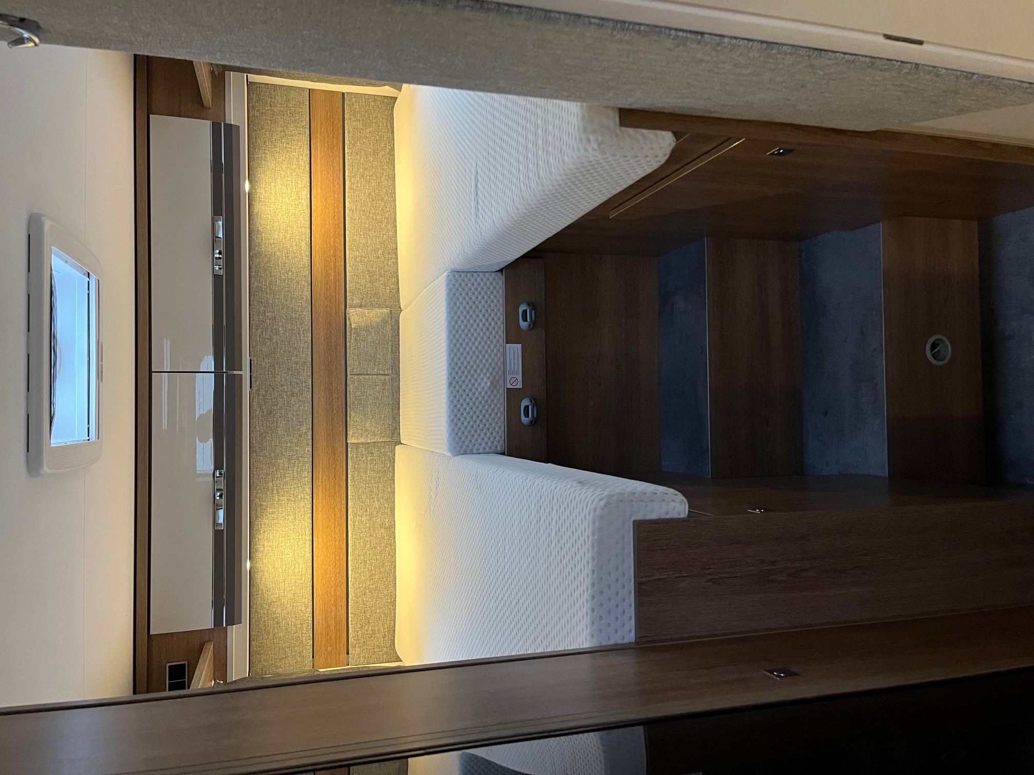 kombinovaná kúpeľňa - otočné WC, sprchovacie vybavenie, rošt, zrkadlá s úložnými skrinkami, spúštacie lôžko, zadné jednolôžka s možnosťou rozloženia na veľké lôžko, šatníkové skrine, skrinky s tichým zatváraním