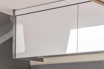 - Ergonomický interiér s bezúchytkovými (voliteľne podsvietenými) hornými skrinkami