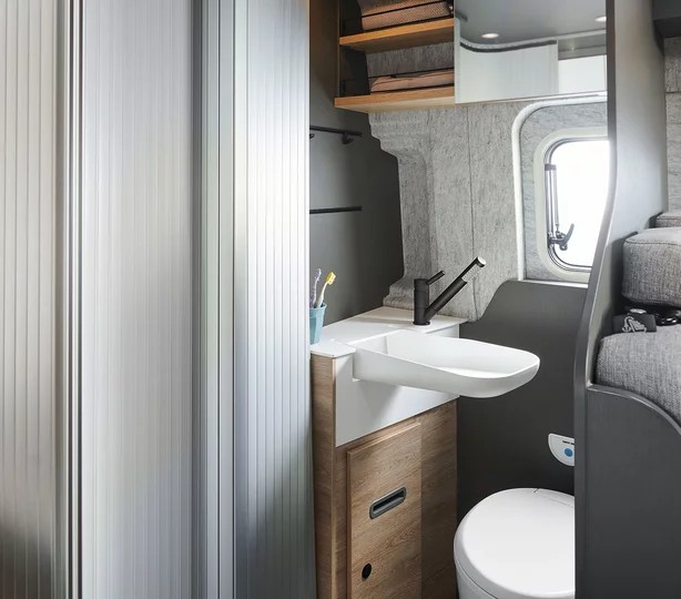 Jedným z vrcholov Globetrail Performance 600 DR je inovatívna kúpeľňa so sprchovacím kútom, ktorá v tejto triede nastavuje nové štandardy. V zadnej časti lôžka zabezpečujú predĺženia stien, že priečne lôžko s dĺžkou 2,00 metra a šírkou 1,40 metra ponúka nadpriemerný priestor.