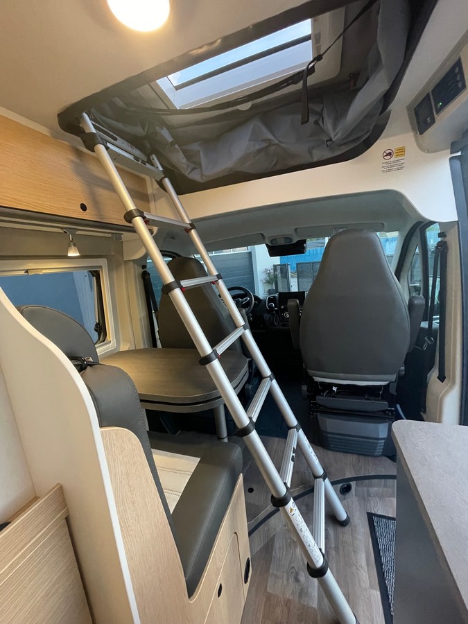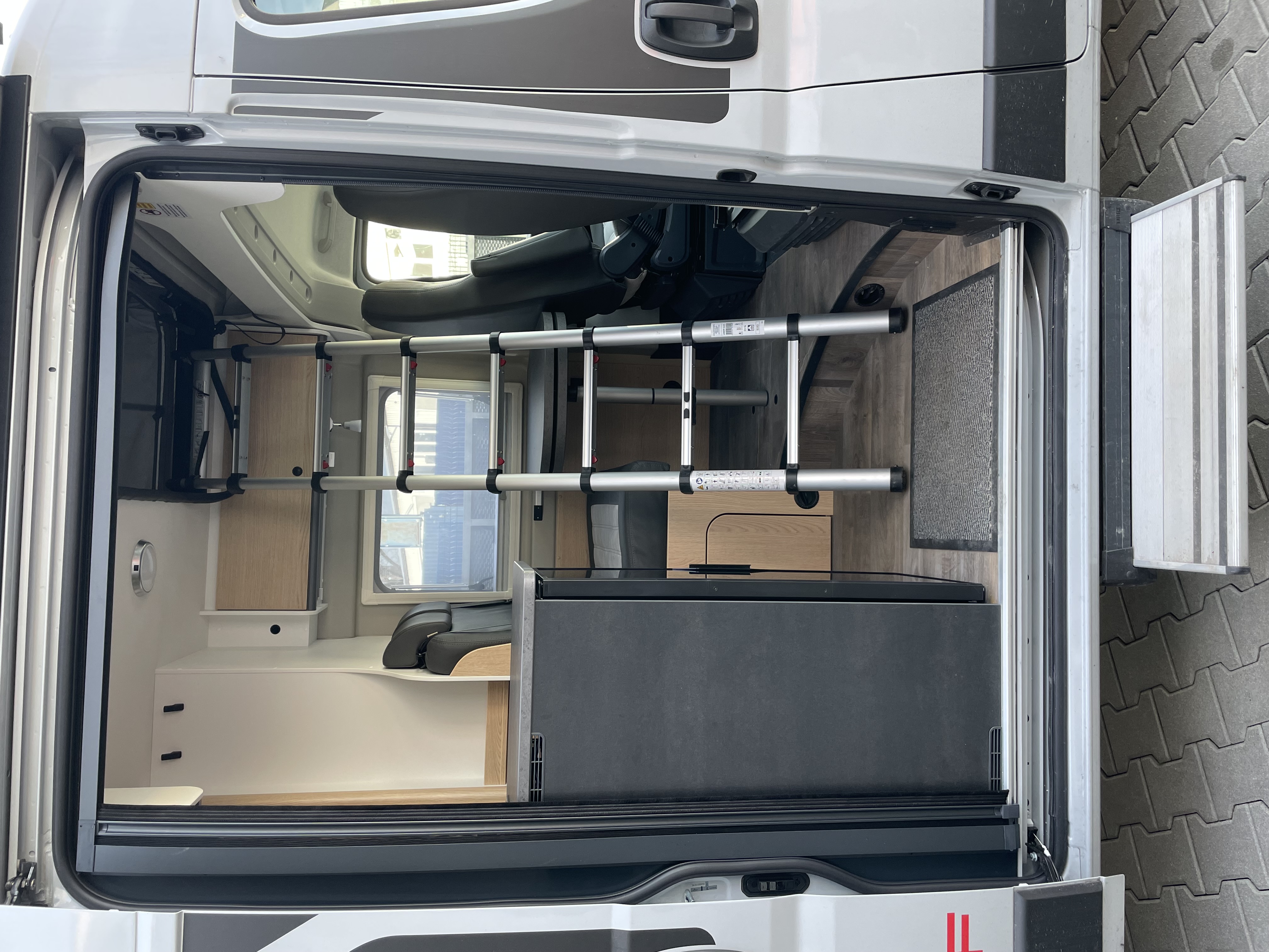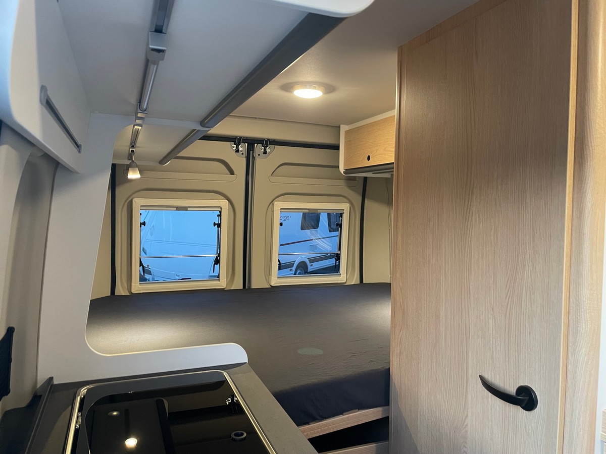 Nadstavba interiér/obytný priestor: Isofix pre dve sedadlá, predel medzi obytnou časťou a garážou s nástupným schodíkom k zadnej posteli, jedálenský stôl s integrovanou odkladacou priehradkou, polovičný jedálenský kút s integrovanou odkladacou priehradkou, zadná posteľ s lamelovým roštom, vysokokvalitné matrace pre väčší komfort ležania, polohovateľné bodové svetlo v koľajničke, ergonomicky tvarované polstrovanie pre väčší komfort pri sedení, priestranné odkladacie priestory, odkladací priestor v zadných a posuvných dverách, priestranný šatník, dvere so sieťkou proti hmyzu, strešná skrinka s ambientným osvetlením, dekór dreva Black Flow, Dyna White a Active Grey, podlaha Mountain Lodge, látkové zatemnenie kabíny
