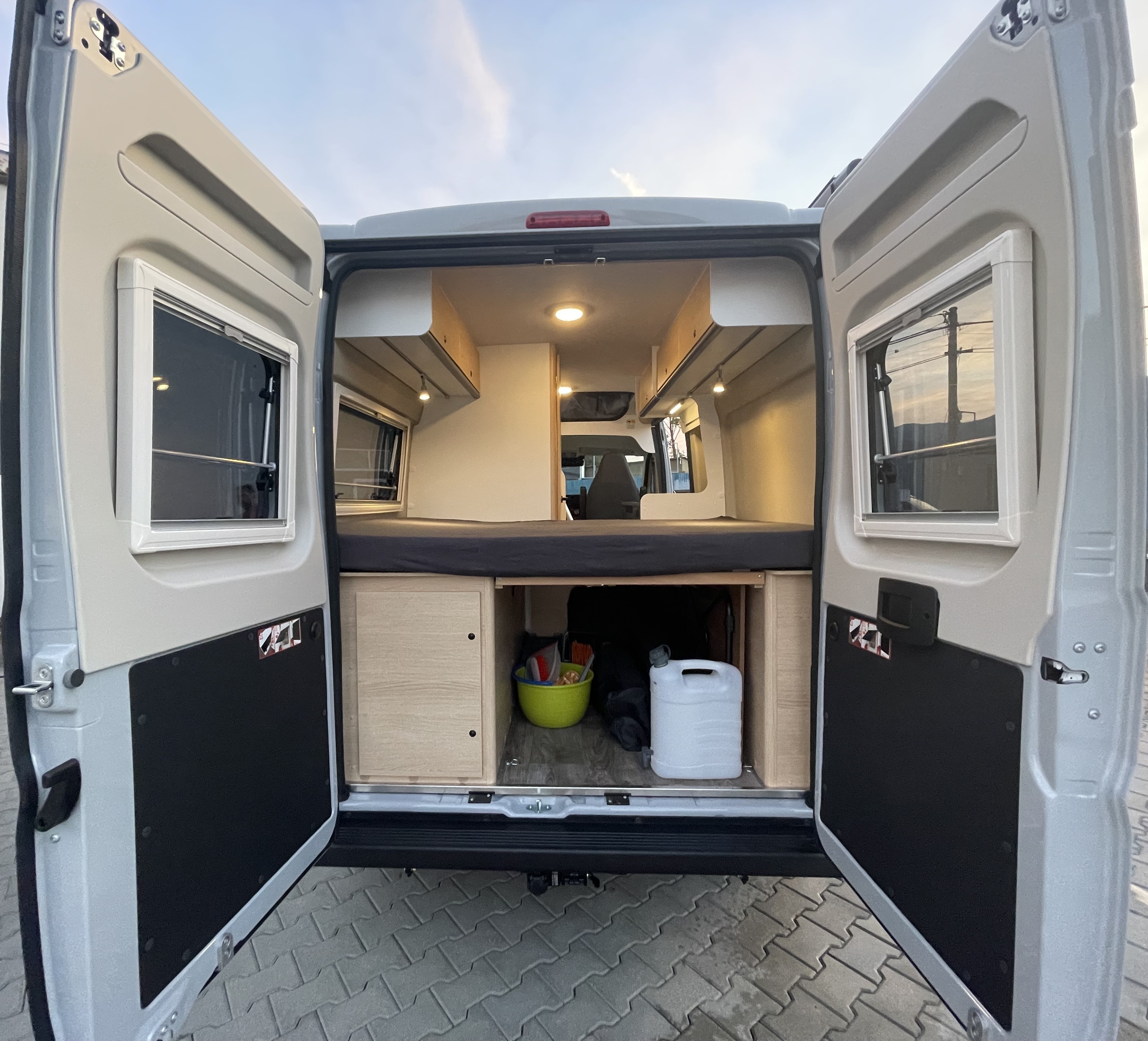 Nadstavba exteriér: 7 rokov záruka na vodotesnosť, výklopné okná s dvojitým sklom, moskytiérou a zatemnením (pri sedacej súprave a v kuchyni), výklopné okno v smere jazdy vzadu vľavo (vrátane zatemňovacej a protihmyzovej roletky), oboje zadné dvere so sklopným oknom (vrátane roletky), strešné okno nad spacím priestorom 40 x 40 cm so zatemňovacou a protihmyzovou roletkou, strešné okno nad sedením Midi-Heki 700 x 500 cm, zadný úložný priestor so štyrmi integrovanými úchytnými okami