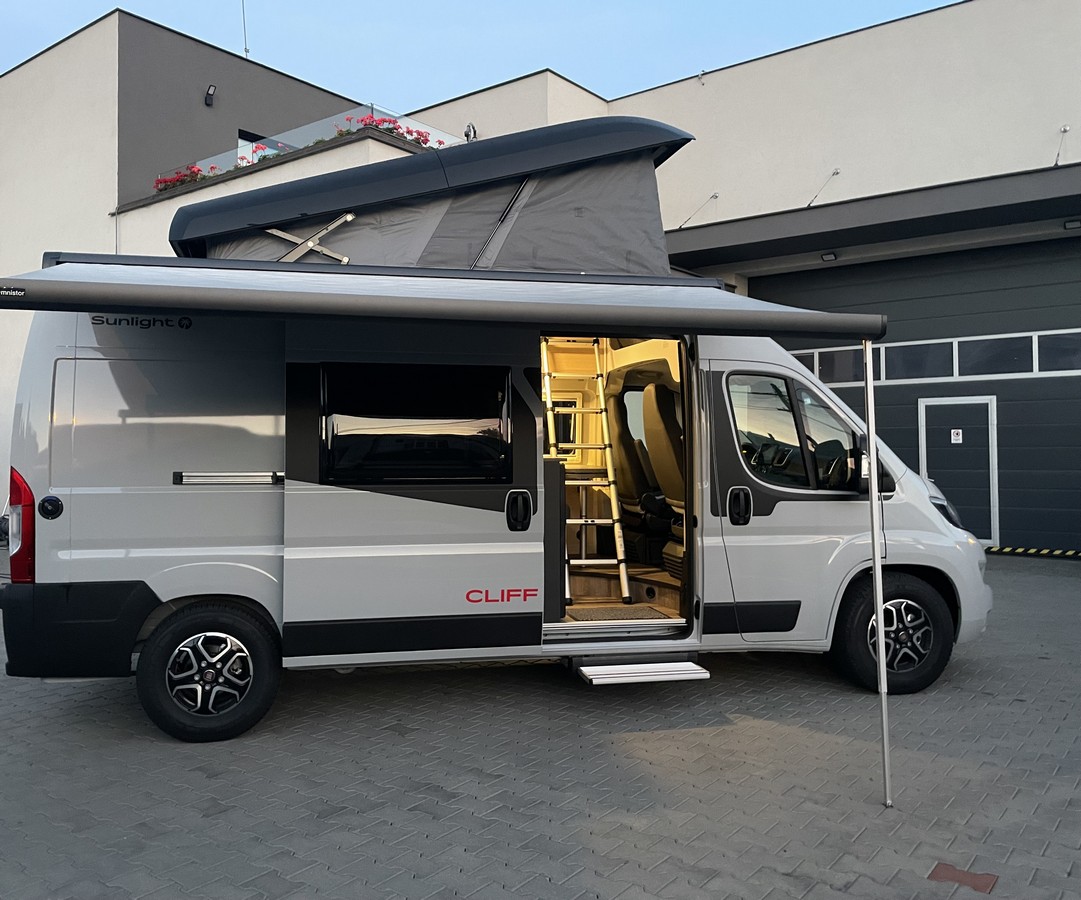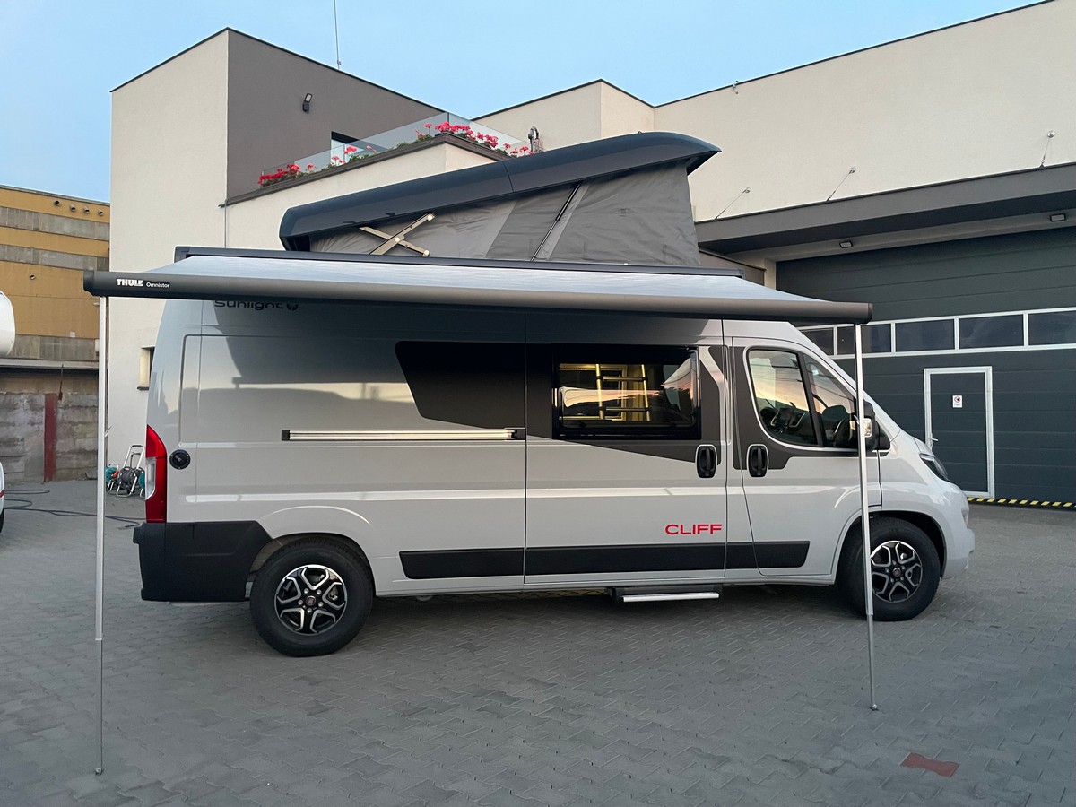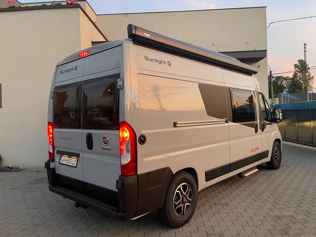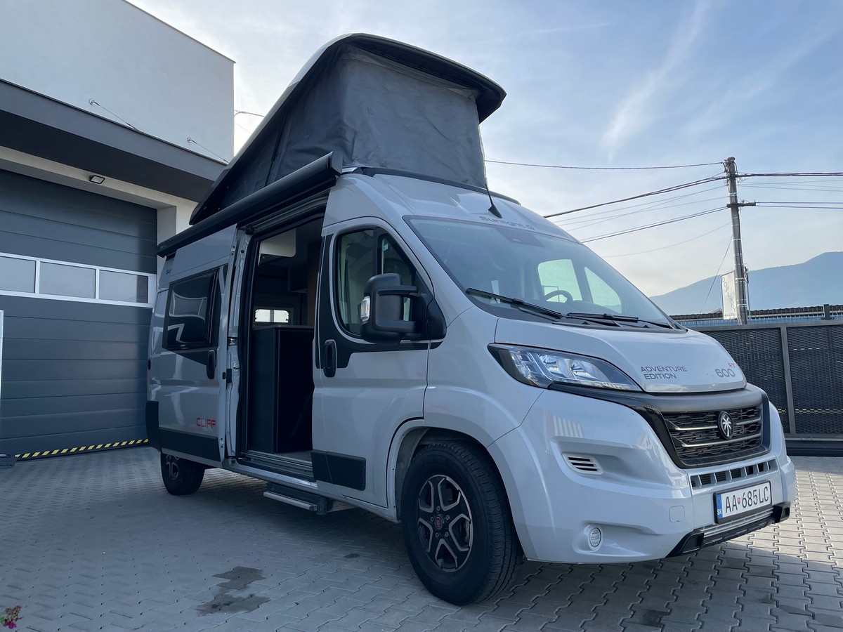 Fiat Ducato 3 500 kg | 2.2 MultiJet | 103 kW | 140 PS Euro 6 | 8-stupňová automatická prevodovka, farba podvozku Campovolo, izolovaná vyhrievaná odpadová nádrž, 90 l palivová nádrž, snínač tlaku v pneumatikách, drevený rošt v sprche, kúrenie naftové Combi 4, autorádio s cúvacou kamerou, Cliff RT balíček (spacia strecha), ťažné zariadenie, Monocontrol