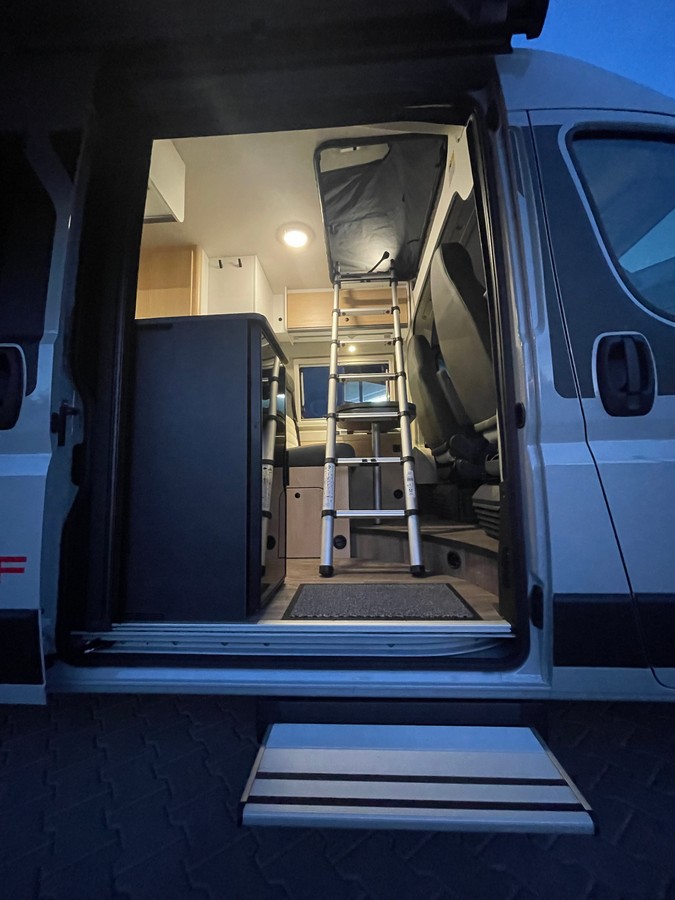 Rozšírená sériová výbava Adventure Edition: Fiat Ducato 3.500kg - 2.2 Multijet - 103kW / 140PS Euro 6-6 stupňová manuálna prevodovka, lakovaný nárazník, strecha na spanie, čalúnenie Adventure, Adventure polep, 16" hlinikové disky original Fiat pre Light podvozok, markíza, Basic balíček (sprchové vybavenie (výsuvná sprchová hlavica, sprchový záves, vodiaca lišta, držiak sprchy), okno v kúpeľni, široký vstupný schodík, otočné predĺženie stola v sedacej časti, tyč na šaty v sprchovacom kúte, príprava kábla pre cúvaciu kameru), Style balíček (Volant a riadiaca páka v koženom vyhotovení, vetracie otvory so striebornými aplikáciami (Techno-Trim), mriežka chladiča čierna lesklá, ochranný panel motora čierny, LED pásiky denného svietenia, svetlomety s čiernym rámom)Vozidlo: Eco Pack Start-Stop funkcia + booster, klimatizácia motorová manuálna, tempomat, súprava na opravu pneumatík Fix & Go Kit, nádrž na naftu 75 l, nastavovanie výšky a sklonu pre sedadlo vodiča a spolujazdca, držiak nápojov v stredovej konzole, príprava na rádio s reproduktorom a strešnou anténou (DAB), airbag vodiča a spolujazdca, centrálne uzamykanie kabíny s diaľkovým ovládaním, denné svietenie, sedadlo vodiča a spolujazdca v látke obytného priestoru, otočné sedadlo vodiča a spolujazdca, ESP, ESC vrátane ASR & Hillholder, ESC Setup, elektrické okná v kabíne, sedadlo vodiča s 2 lakťovými opierkami, vonkajšie spätné zrkadlá elektricky ovládateľné a vyhrievané, palubný počítač s ukazovateľom vonkajšej teploty, ABS, kotúčové brzdy, stabilizátor zadnej a prednej nápravy, obehové vykurovanie, otáčkomer, posilňovač riadenia, výškovo nastaviteľné svetlomety, imobilizér, 3-bodový bezpečnostný pás, USB zásuvka