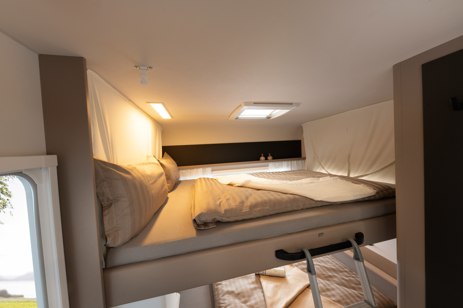 Špeciálne pre rodiny je tu c'go up s výklopnou posteľou: priestranný rodinný karavan, ktorý je prekvapivo kompaktný vďaka dômyselnej výklopnej posteli.