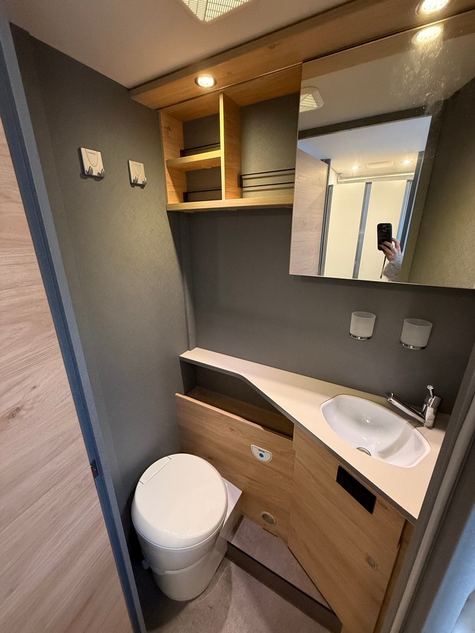 Elektroinštalácia: nadstavbová batéria AGM, 95 Ah, baldachýn nad nadstavbovými dverami, kontrolný panel, EBL s integrovanou ochranou prepätia a samostatným ističom, LED podsvietenie v celom vozidle, počet zásuviek 1x 12V, 8x 230V, 4x USB, predstanové svetlo 12 V, oddeľovač na štartovaciu a nadstavbovú batériu a chladničku