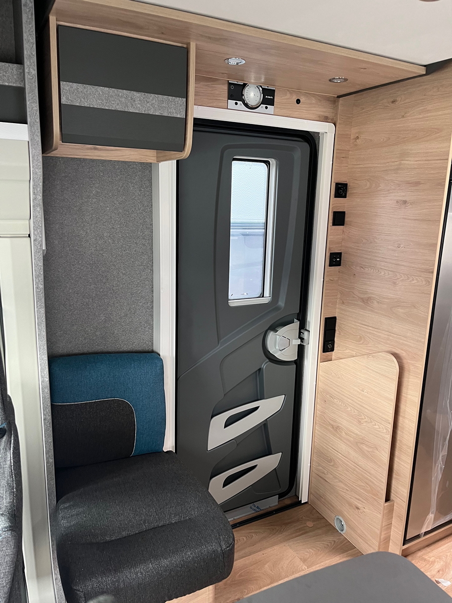 Comfort Paket – hliníkové disky 16“ čierne, airbag spolujazdca, dvere obytného priestoru vrátane zatemnenia a centrálneho zamykania (vrátane dverí vodiča), výklopné okno v kabíne, zatemňovacie rolety v kabíne, panoramatické okno 70x50 cm v obytnom priestore