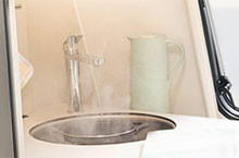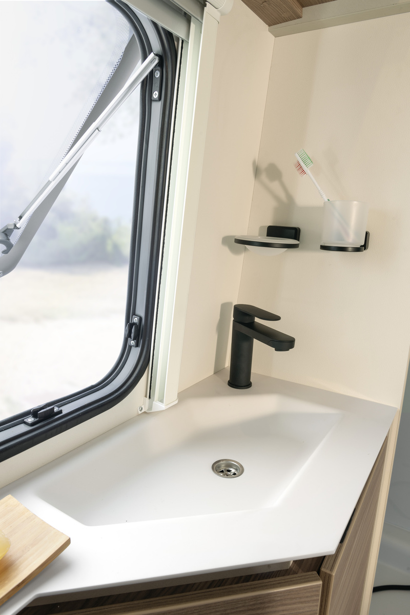 Veľké okno so sieťkou proti hmyzu a zatemňovacou roletou zabezpečuje potrebnú výmenu vzduchu po sprchovaní. • 490 EST