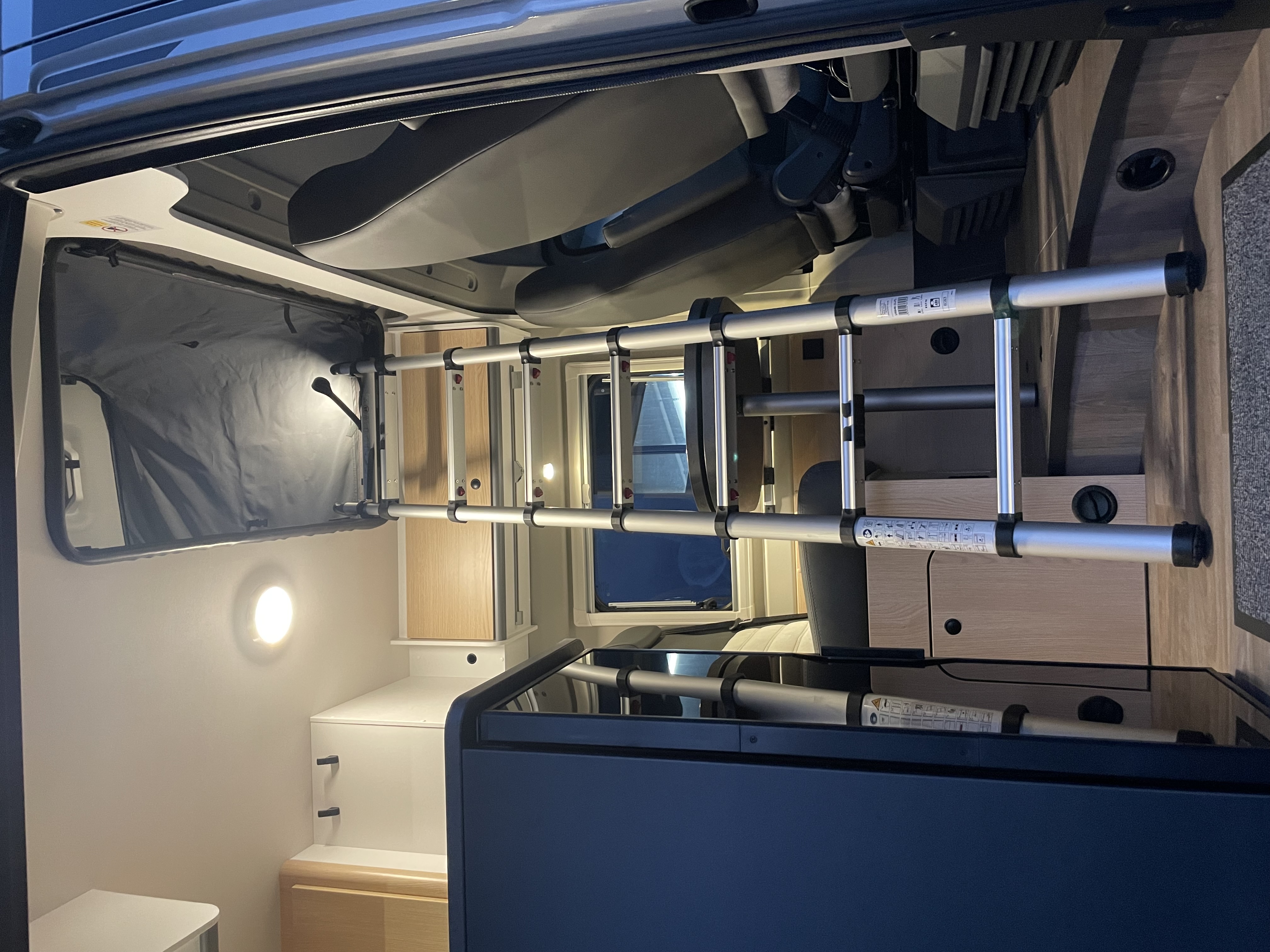 Nadstavba interiér/obytný priestor: Isofix pre dve sedadlá, predel medzi obytnou časťou a garážou s nástupným schodíkom k zadnej posteli, jedálenský stôl s integrovanou odkladacou priehradkou, polovičný jedálenský kút s integrovanou odkladacou priehradkou, zadná posteľ s lamelovým roštom, vysokokvalitné matrace pre väčší komfort ležania, polohovateľné bodové svetlo v koľajničke, ergonomicky tvarované polstrovanie pre väčší komfort pri sedení, priestranné odkladacie priestory, odkladací priestor v zadných a posuvných dverách, priestranný šatník, dvere so sieťkou proti hmyzu, strešná skrinka s ambientným osvetlením, dekór dreva Black Flow, Dyna White a Active Grey, podlaha Mountain Lodge, látkové zatemnenie kabíny