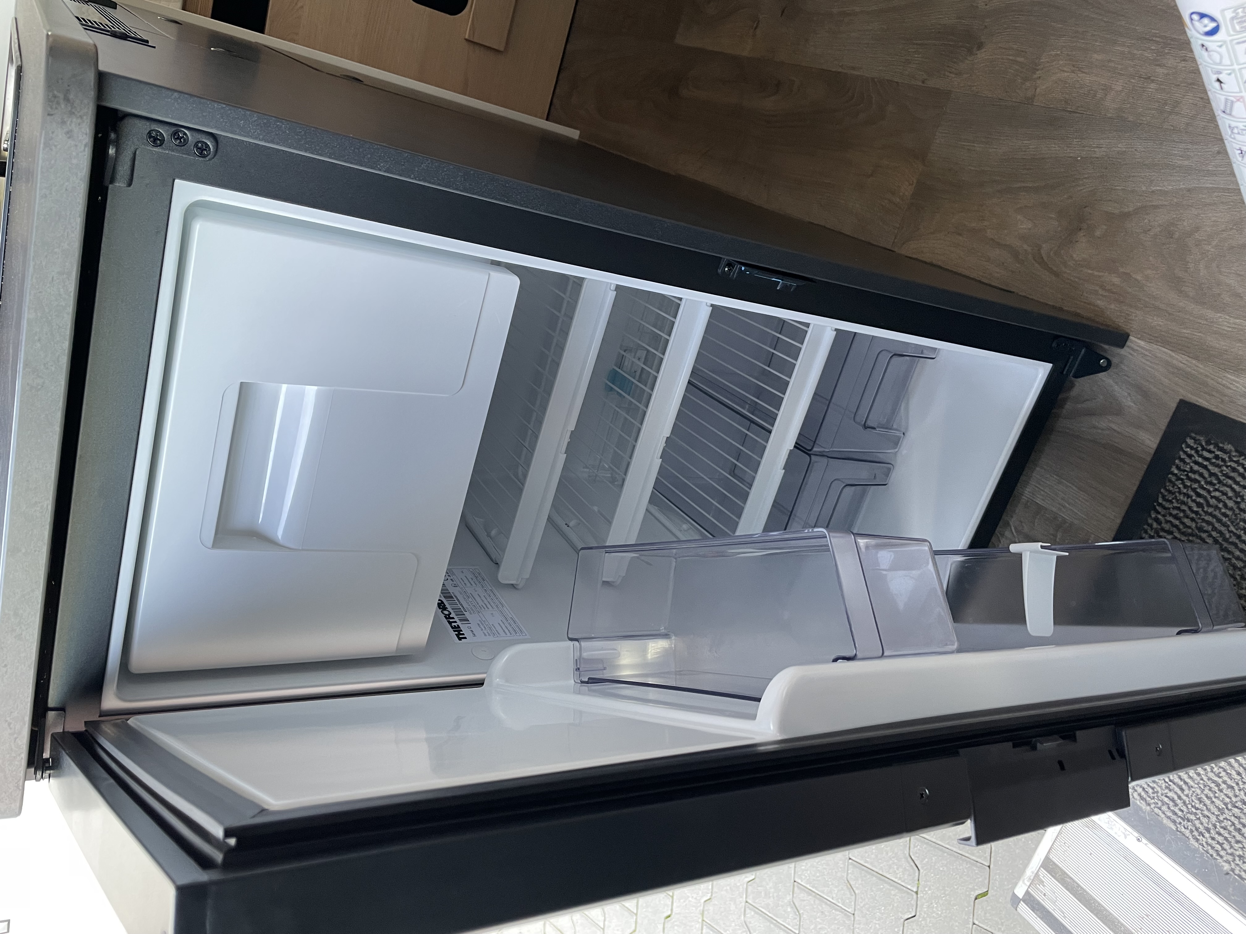 Kuchyňa: ergonomicky usporiadaná kuchyňa s veľkorysou pracovnou plochou, priestranné šuplíky v kuchynke s dojazdom, 2-horákový sporák s elektrickým zapaľovaním a skleneným poklopom, úložný priestor za varičom, nádrž na pitnú vodu 100 l, nádrž na odpadovú vodu 90 l, kompresorová chladnička 84 l, LED podsvietenie, závesná lišta
