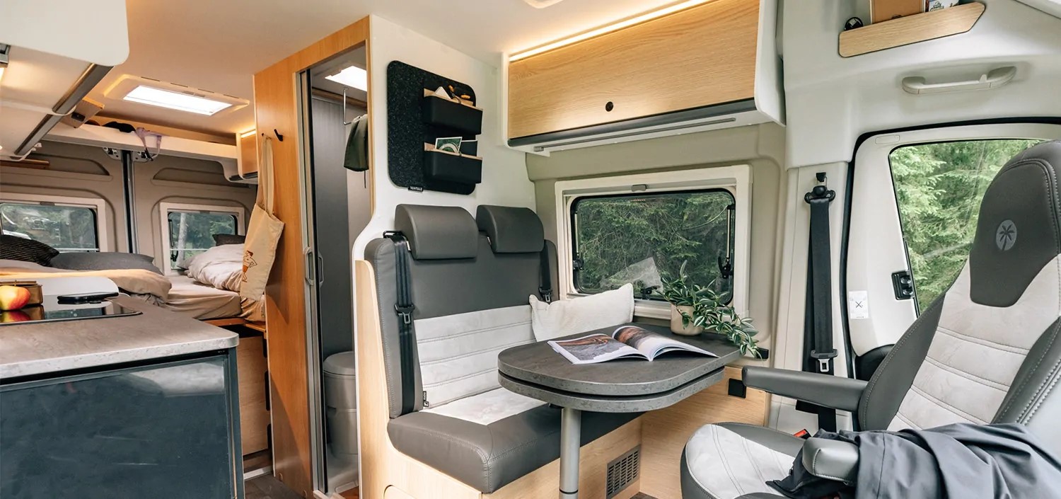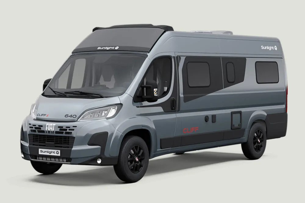 Luxusný model medzi našimi obytnými autami: CLIFF X prichádza s mimoriadne kvalitným nábytkom, špeciálnou otočnou kúpeľňou a ponúka široký výhľad vďaka panoramatickému oknu. Voliteľne dostupné aj s vysúvacou strechou!