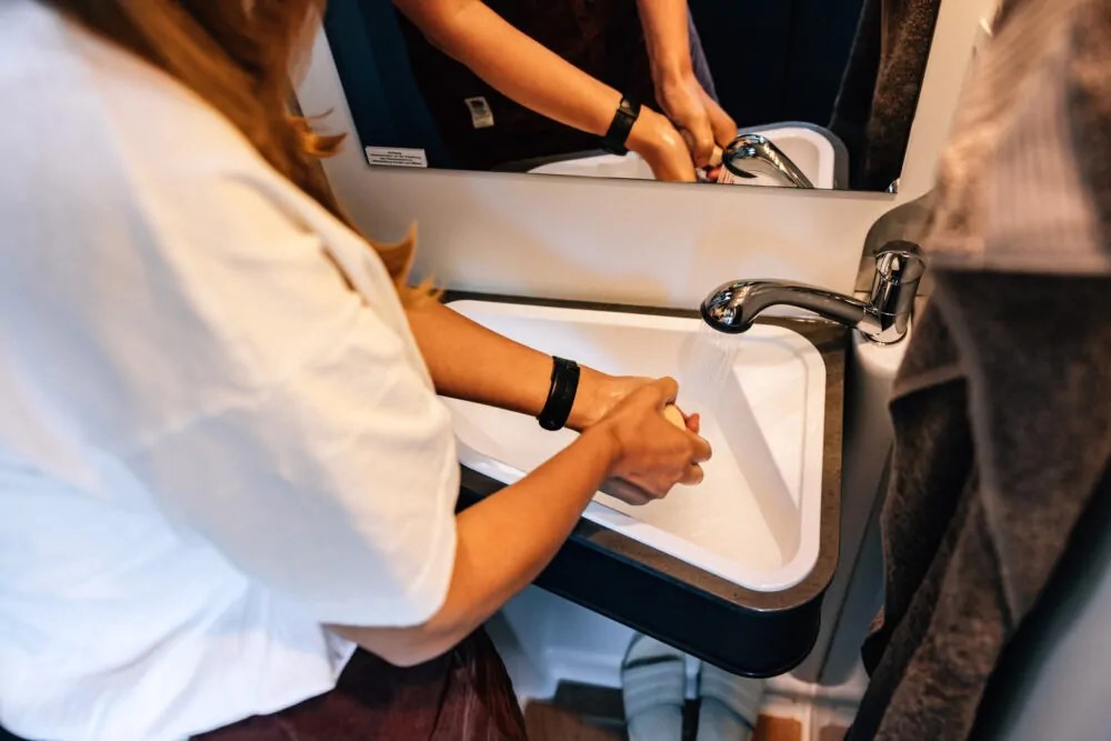 Nová otočná kúpeľňa je vybavená lamelovými dverami.