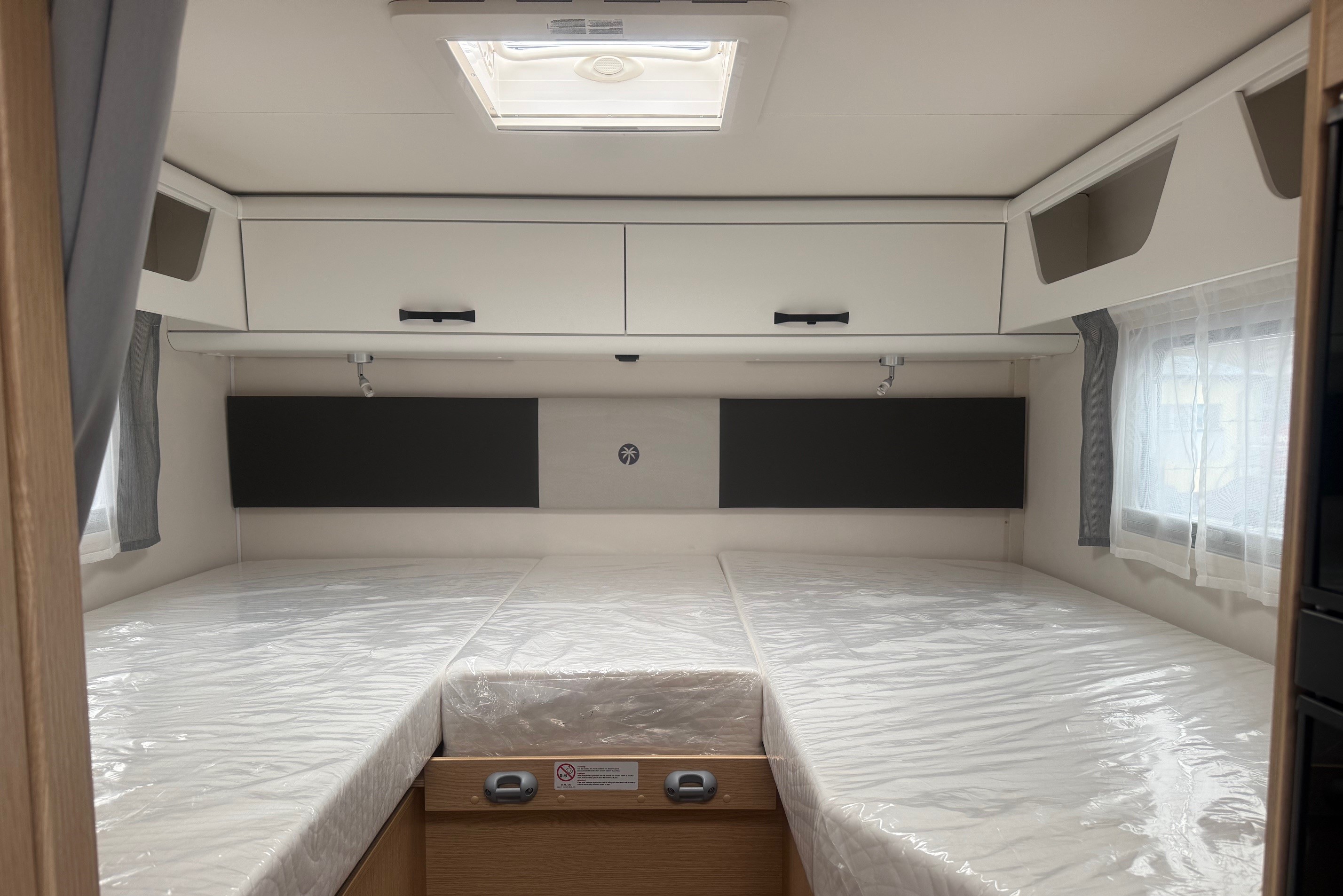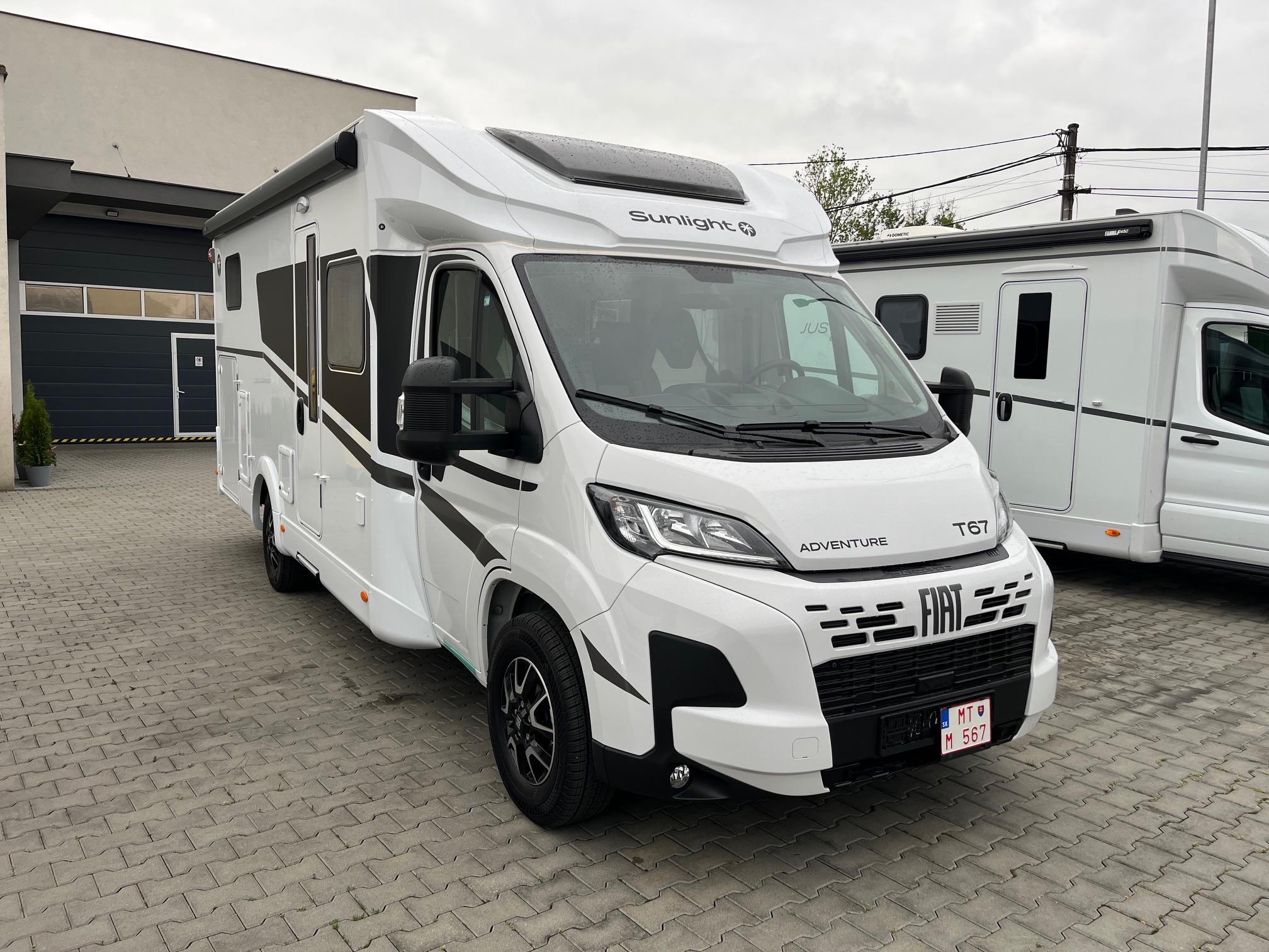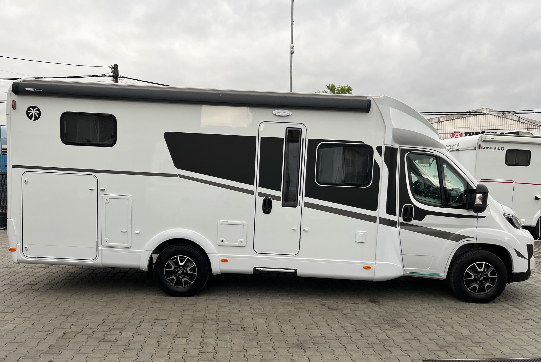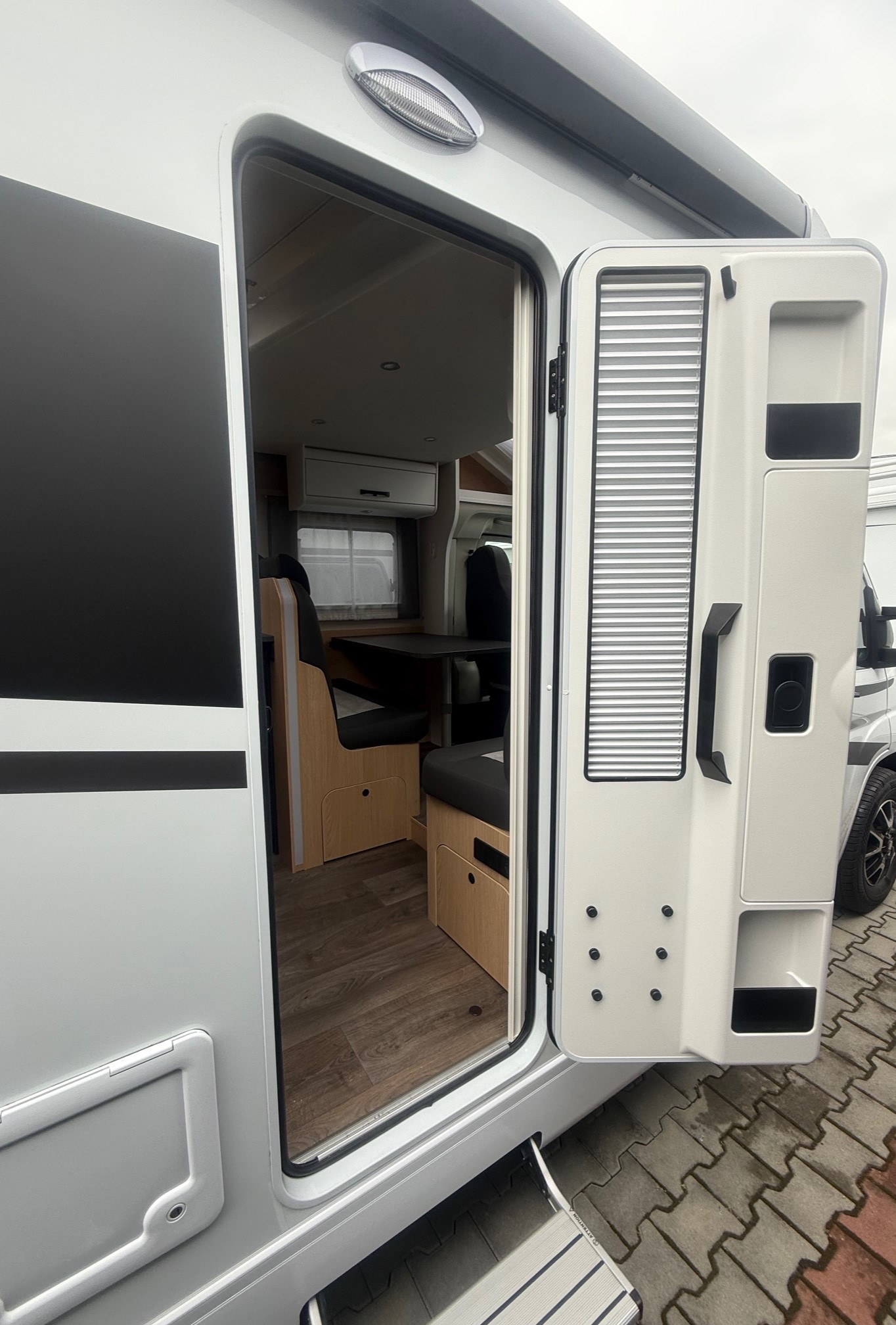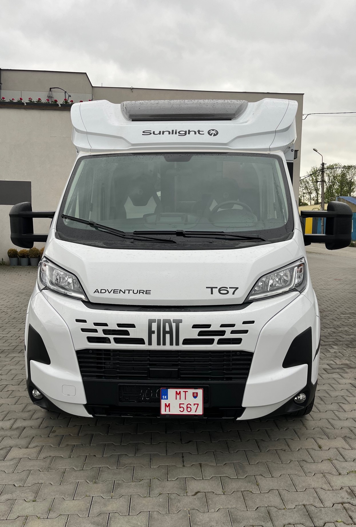 Fiat Ducato 2,2 l Multijet 103 kW / 140 PS, Euro 6 E, 6-stupňová manuálna prevodovka, farba podvozku biela, polep Adventure, poťahy Adventure, dizajnové aplikácie vzadu, okno v kabíne, okno v kabíne, 2. garážové dvierka, veľká chladnička 156 l s mraziakom 29 l, prestavba jednolôžok na dvojlôžko, balíček One Black (markíza, nosič na 3 bicykle), basic balíček (svetelný most, komfortné vstupné dvere s oknom, dvere so sieťkou proti hmyzu-jednodielne, panoramatické strešné okno 70 x 50 cm, priehľadné strešné okno 40 x 40 cm), balíček lakovaný nárazník (lakovaný nárazník, ochrana motora čierna, hmlovky), balíček hliníkové disky Bicolor (kožený volant a hlavica radiacej páky, výstupy vzduchu so striebornými aplikáciami (Techno-Trim), 16“ hliníkové kolesá Bi-Color)