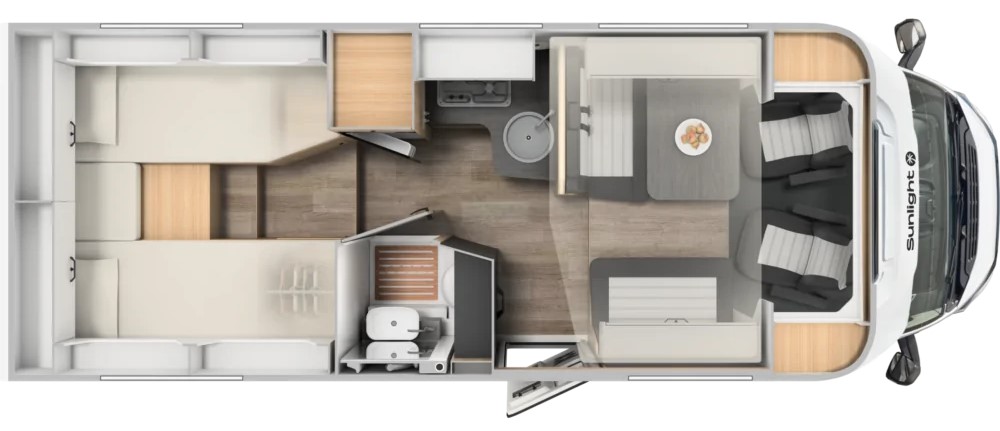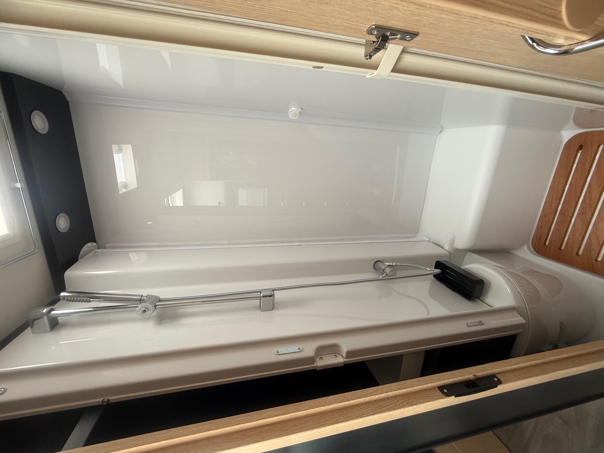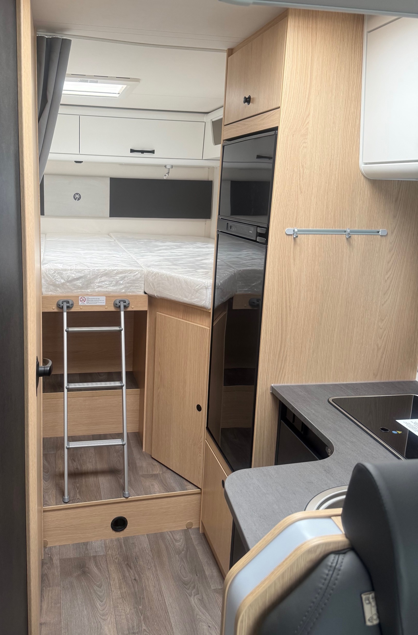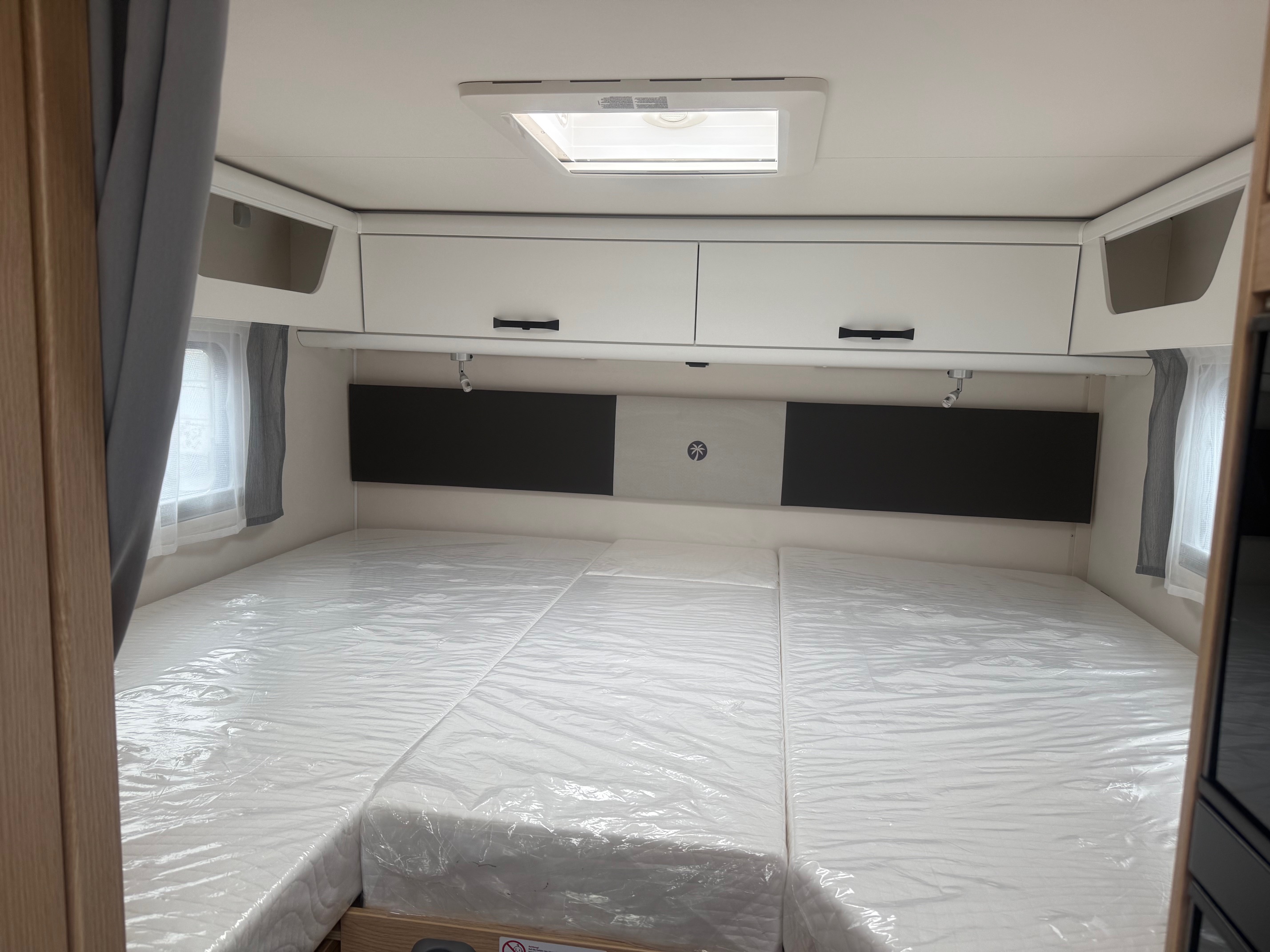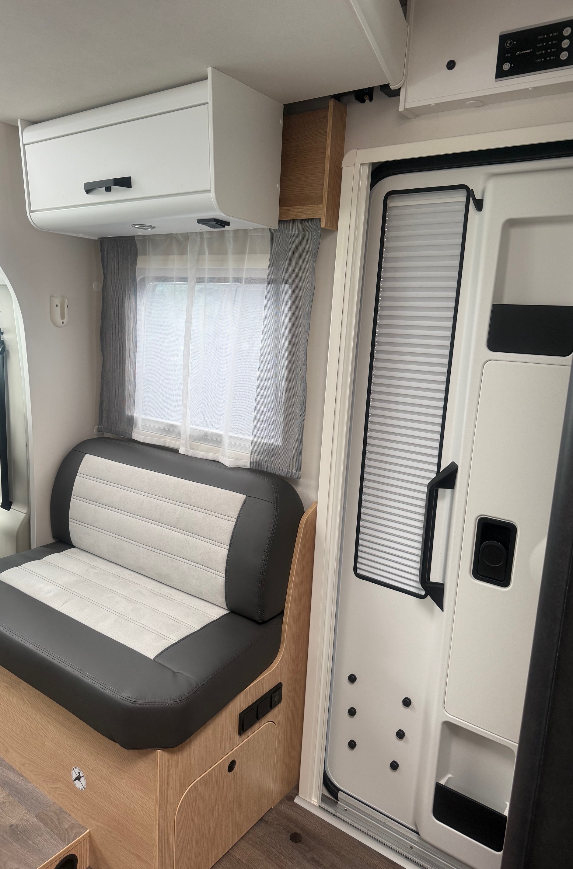 Fiat Ducato 2,2 l Multijet 103 kW / 140 PS, Euro 6 E, 6-stupňová manuálna prevodovka, farba podvozku biela, polep Adventure, poťahy Adventure, dizajnové aplikácie vzadu, okno v kabíne, okno v kabíne, 2. garážové dvierka, veľká chladnička 156 l s mraziakom 29 l, prestavba jednolôžok na dvojlôžko, balíček One Black (markíza, nosič na 3 bicykle), basic balíček (svetelný most, komfortné vstupné dvere s oknom, dvere so sieťkou proti hmyzu-jednodielne, panoramatické strešné okno 70 x 50 cm, priehľadné strešné okno 40 x 40 cm), balíček lakovaný nárazník (lakovaný nárazník, ochrana motora čierna, hmlovky), balíček hliníkové disky Bicolor (kožený volant a hlavica radiacej páky, výstupy vzduchu so striebornými aplikáciami (Techno-Trim), 16“ hliníkové kolesá Bi-Color)