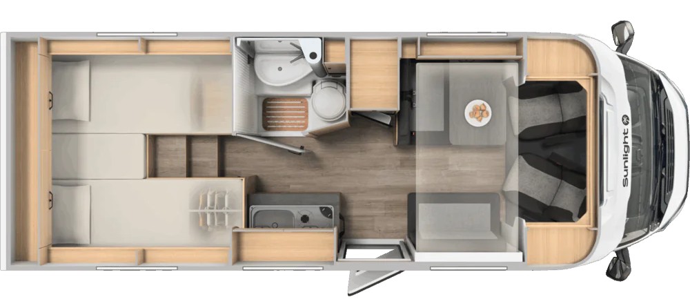 Fiat Ducato 2,2 l Multijet 103 kW / 140 PS, Euro 6 E, 6-stupňová manuálna prevodovka, nádrž na naftu 90 l, poťahy Performance Grey, Caramatic SafeDrive PLUS (dvojvalcový systém s regulátorom tlaku plynu a senzorom nárazu), prestavba jednolôžok na dvojlôžko, prestavba sedenia na lôžko, ľahko rozkladacie jednolôžko vpedu, odpadová nádrž izolovaná, 12V príprava na TV s držiakom na TV, príprava na cúvaciu kameru, príprava na solárne zariadenie